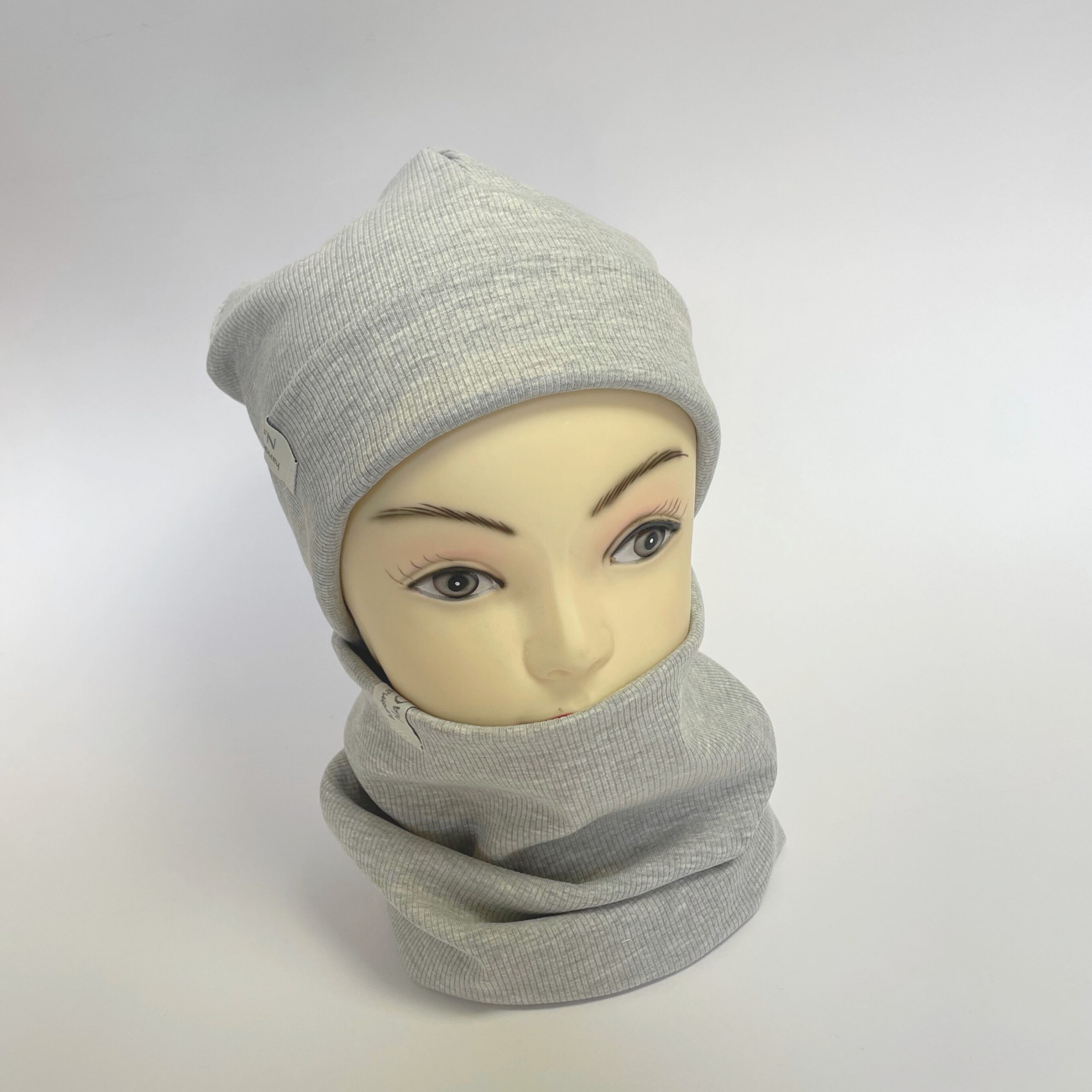 Beanie Mütze mit passendem Loopschal aus Rippstrickjerjersey Die Mütze ist perfekt geeignet für den Frühling oder Herbst. Ideal für kalte Tage oder als modisches Accessoire, bietet Wärme als auch einen trendigen Look Tragen als Beanie oder umgeklappt normale Mütze möglich.