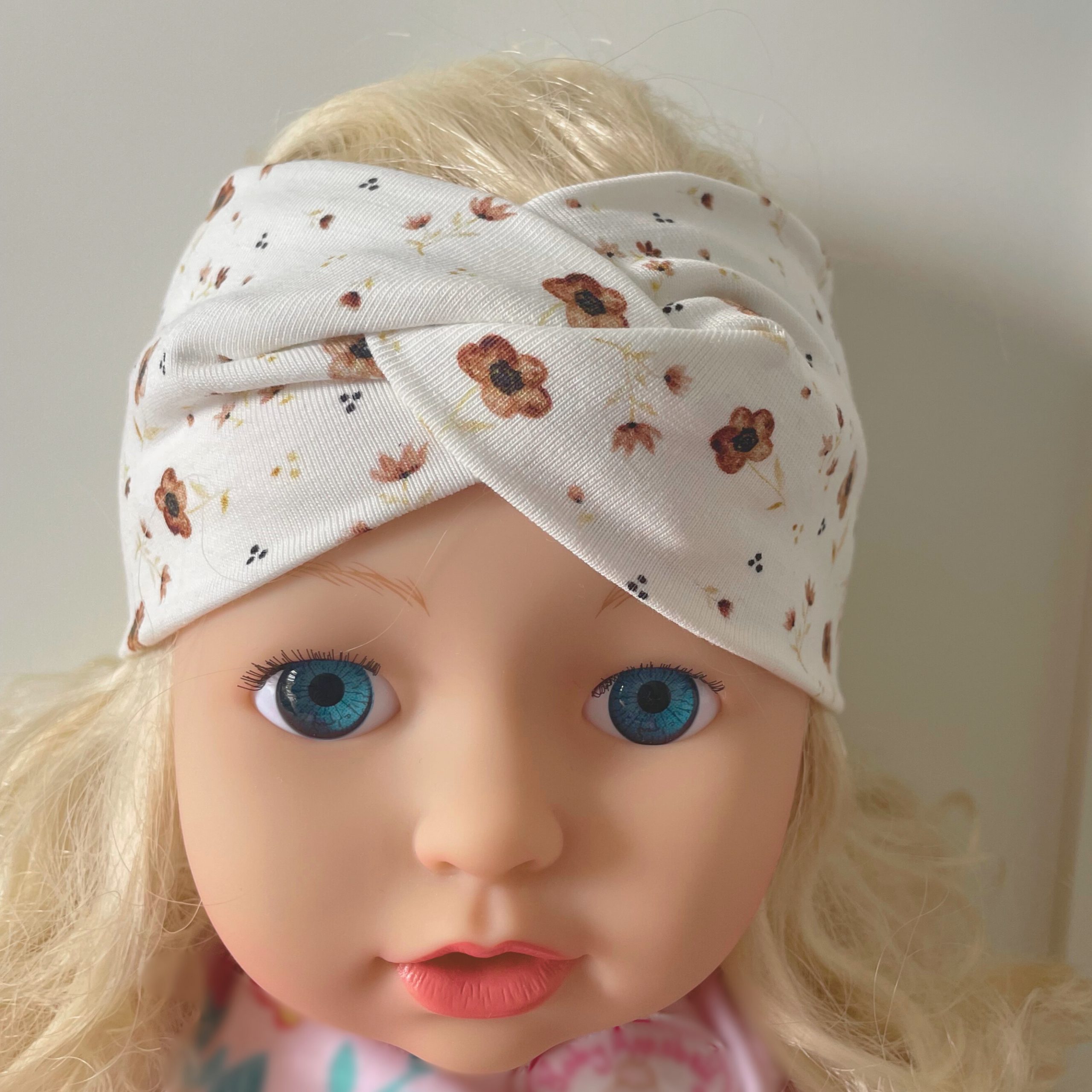 Wunderschöne Stirnbänder aus weichem Jersey für Babys, Kinder und Mamis. Die Stirnbänder sind perfekt geeignet für den Frühling, Herbst und Sommer. Jedes Stirnband wird genau nach Kopfumfang angefertigt. Die ungefähren Breiten: KU 38-47 cm - 7 cm KU 48-50 cm - 8 cm KU 50-56 cm - 10 cm (ungefähr, da im Handmade immer leichte Schwankungen vorkommen können) Material: Ökotex Standard 100 Jersey: 92 % Baumwolle, 8 % Elasthan Farbe/Muster: kleine braune Blumen Pflege: 30 Grad Feinwäsche, bitte nicht in den Trockner geben. Bitte beachte, dass je nach Bildschirmeinstellung die Farben vom echten Produkt abweichen können.