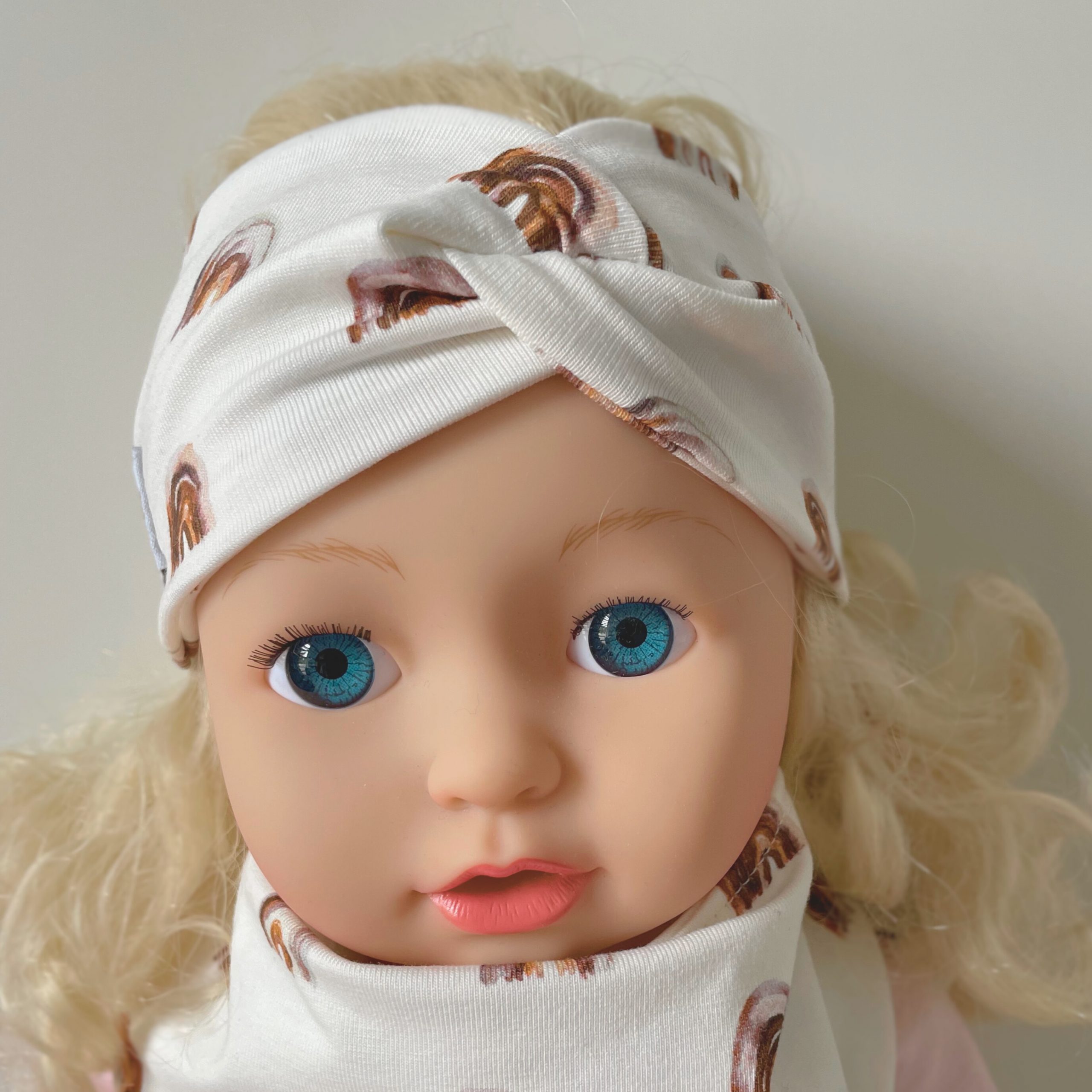 Wunderschönes Stirnbänder aus weichem Jersey für Babys. Die Stirnbänder sind perfekt geeignet für den Frühling, Herbst und Sommer. Für 38-40 Kopfumfang! Die ungefähren Breiten: 7,5 cm (ungefähr, da im Handmade immer leichte Schwankungen vorkommen können) Material: Ökotex Standard 100 Jersey: 92 % Baumwolle, 8 % Elasthan Farbe/Muster: wollweiß mit Regenbogen in Brauntönen Pflege: 30 Grad Feinwäsche, bitte nicht in den Trockner geben. Bitte beachte, dass je nach Bildschirmeinstellung die Farben vom echten Produkt abweichen können.