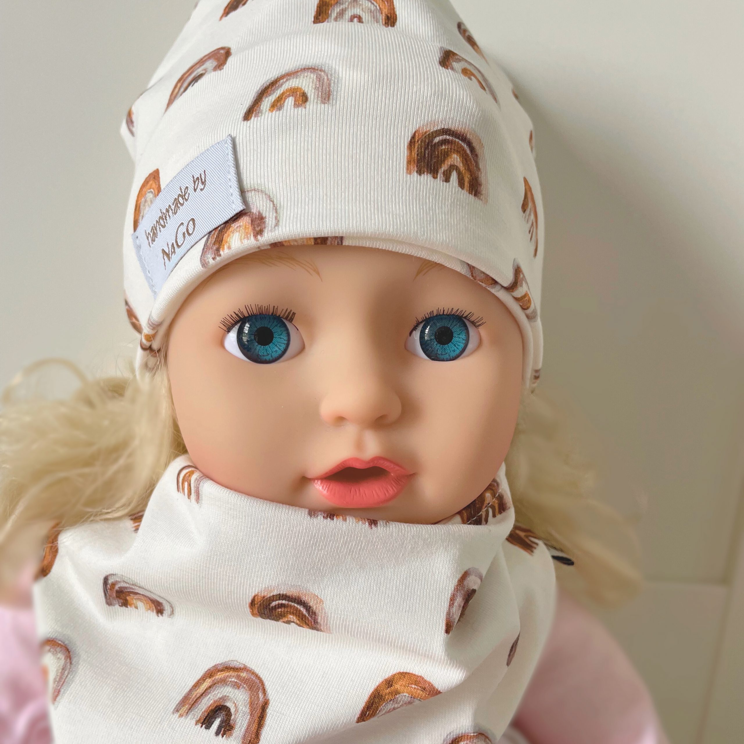 Das perferte Set als Allrounder für den Herbst oder für kühlere Sommertage. Die Größe richtet sich nach dem Kopfumfang des Kindes. Innenseite: aus dem gleichem Stoff Material : Ökotex Standard 100 94% Baumwolle, 6% Elasthan Pflege: 30 Grad Feinwäsche, bitte nicht in den Trockner geben.