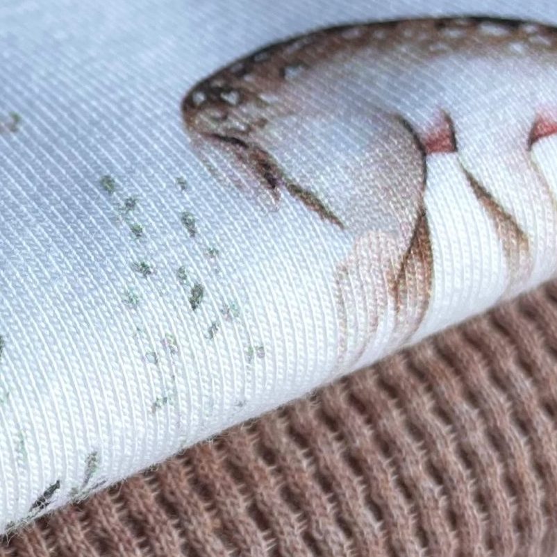 7,45 €Wunderschöner elastischer Ripp-Jersey in dusty green mit Füchsen.