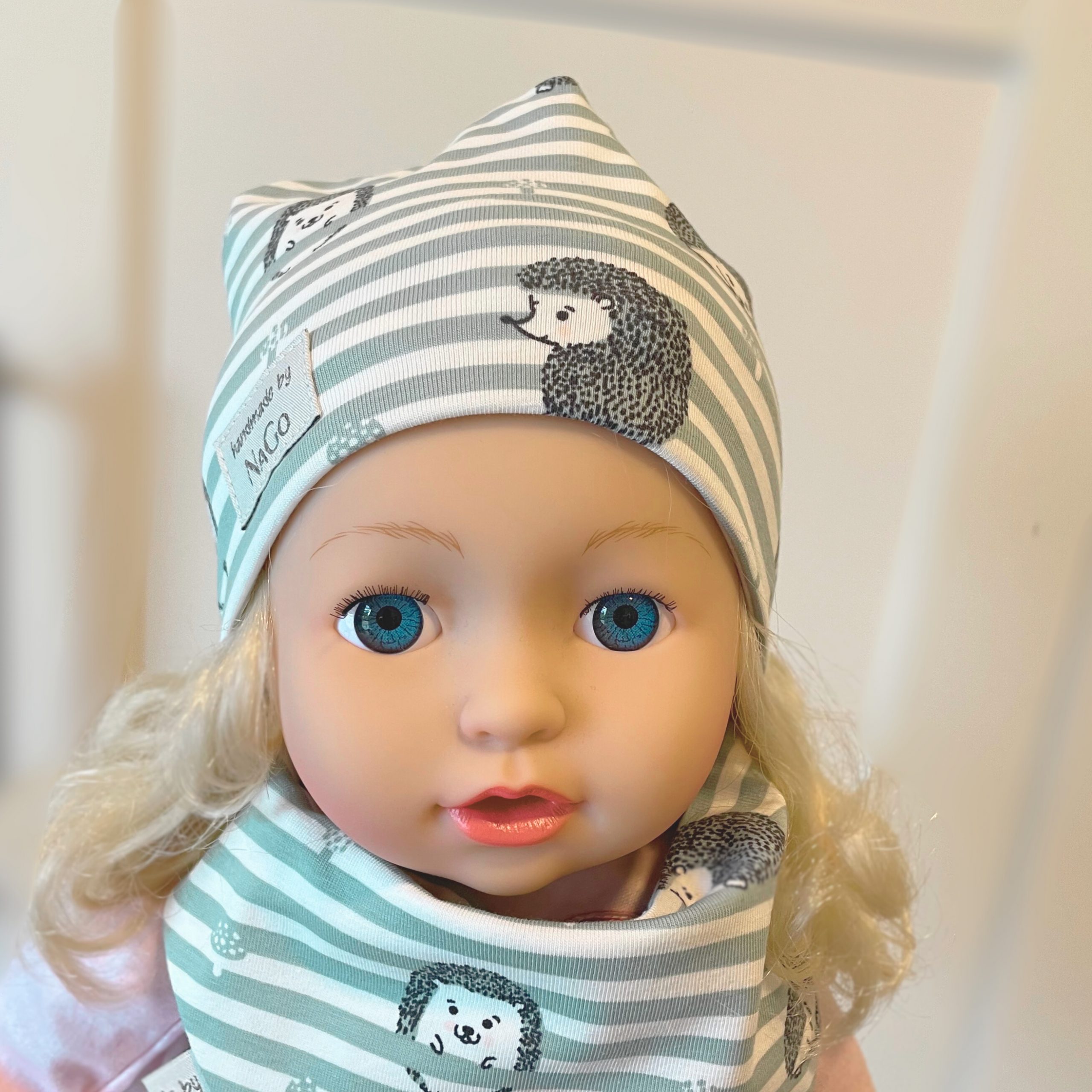 Das perferte Set als Allrounder für den Herbst oder für kühlere Sommertage. Die Größe richtet sich nach dem Kopfumfang des Kindes. Innenseite: aus dem gleichem Stoff Material : Ökotex Standard 100 94% Baumwolle, 6% Elasthan Pflege: 30 Grad Feinwäsche, bitte nicht in den Trockner geben.