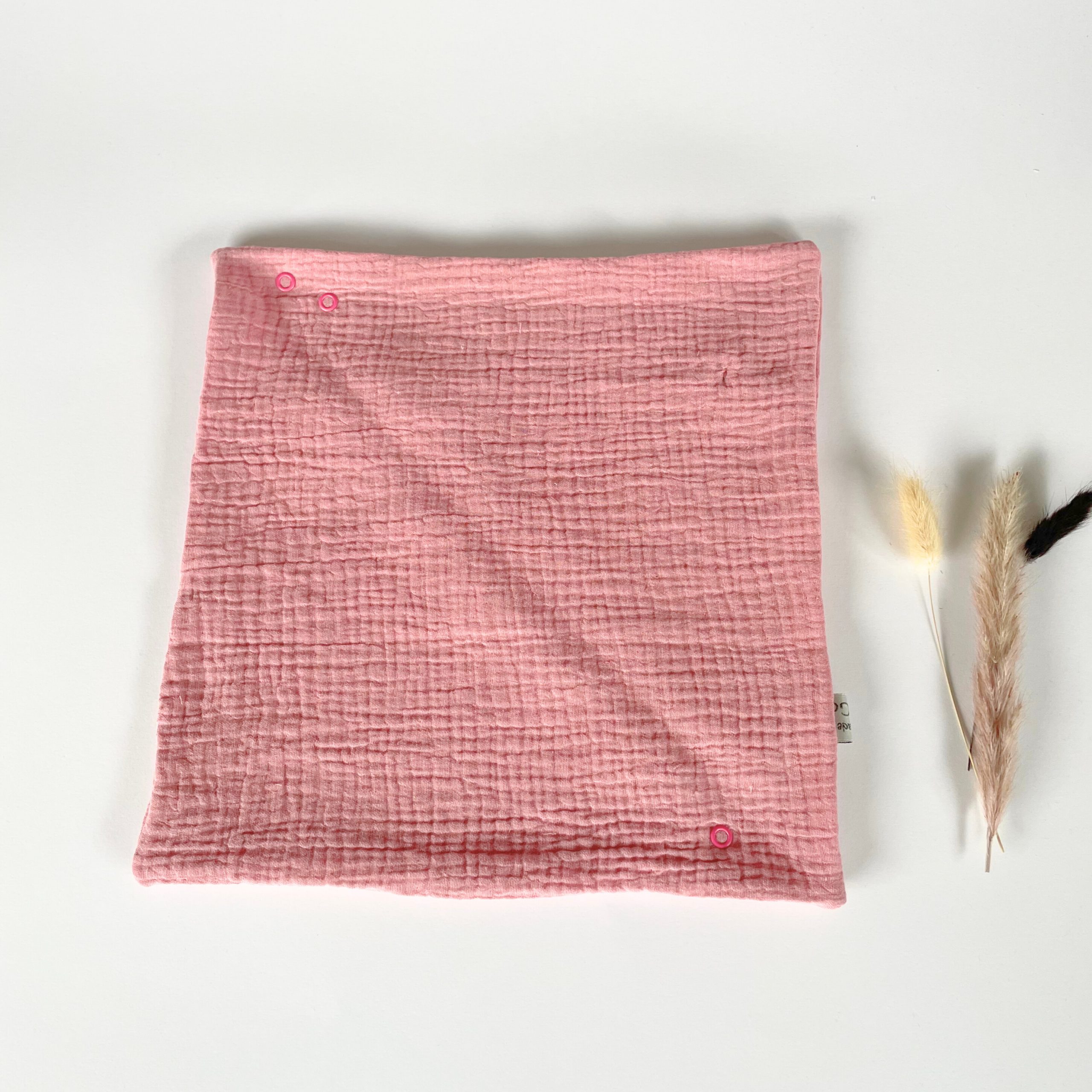 Baumwoll-Musselin ist ein weich fließender, atmunsaktiver, saugfähiger Stoff Für Kinder 0-2 Jahre Maße: 29 cm x 29 cm Material: 100 % Baumwolle, Doppellagig Farbe: altrosa Druckknöpfe, Herz aus Holz