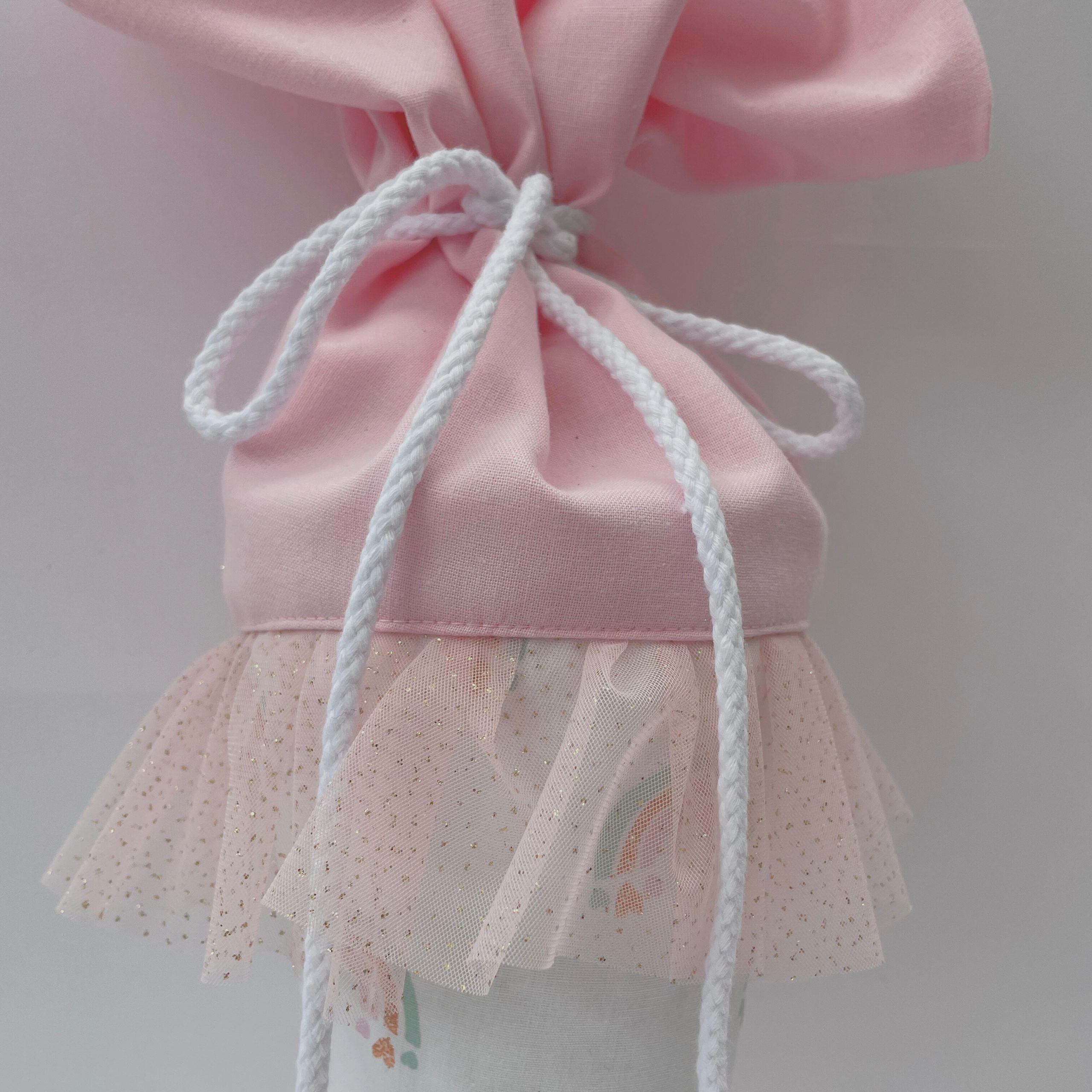 Diese besondere Zuckertüte ist der perfekte Begleiter für den ersten Kitatag oder ein kleines Geschenk für Geschwister. Die 35er Zuckertüte wir mit einer Kordel gebunden. Kitatüte 35 cm ohne Name Stoff: Baumwolle weiß mit Regenbogen und oben zartrosa uni, Rüschen in altrosa mit goldenem Glitzer inklusive Papprohling 35 cm Kordel: weiß Solltest du Interesse an einer Schultüte haben, dann schreib uns gerne eine Nachricht.