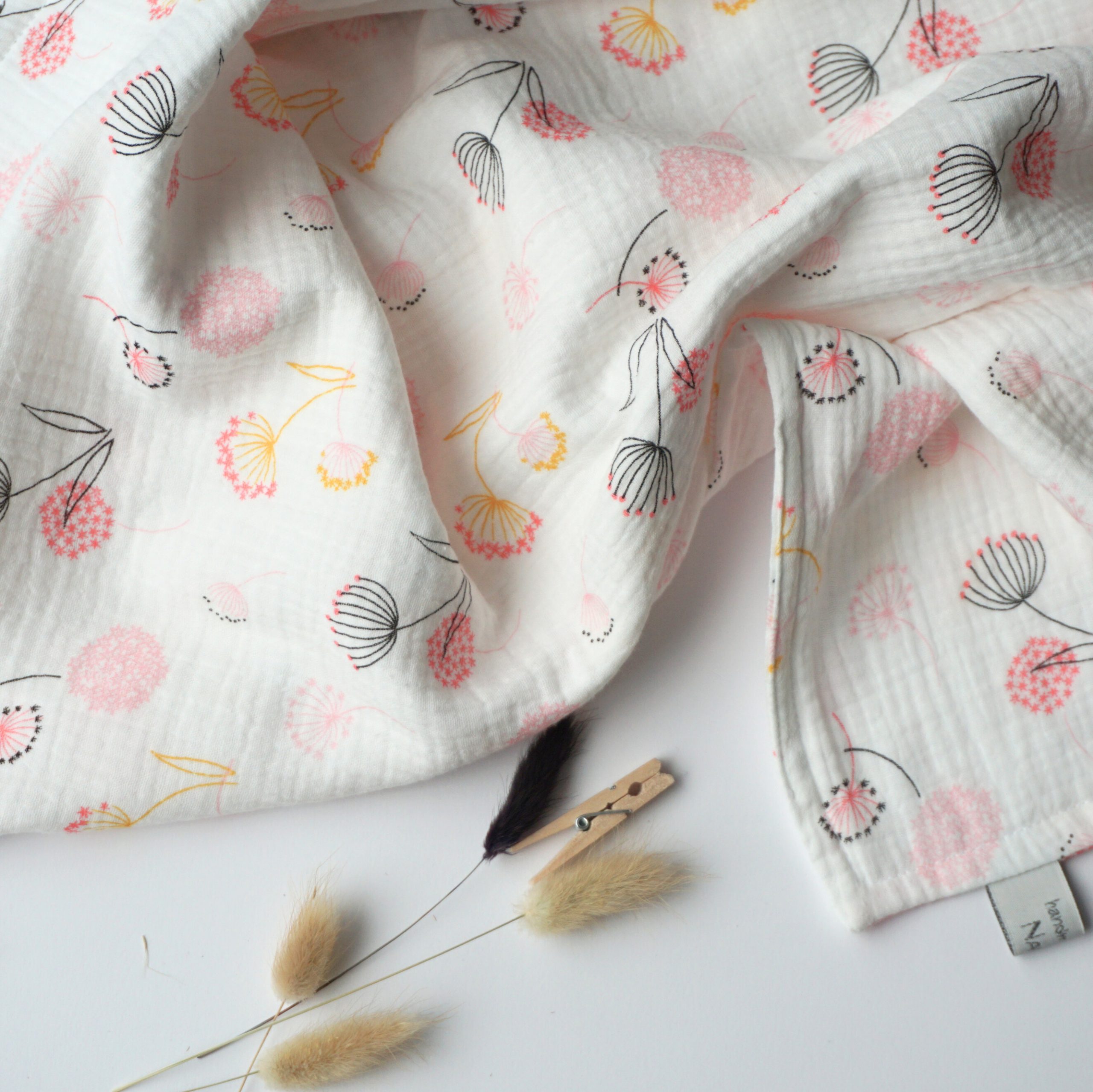 Super weiche Babydecke in weiß mit rosa Pusteblumen