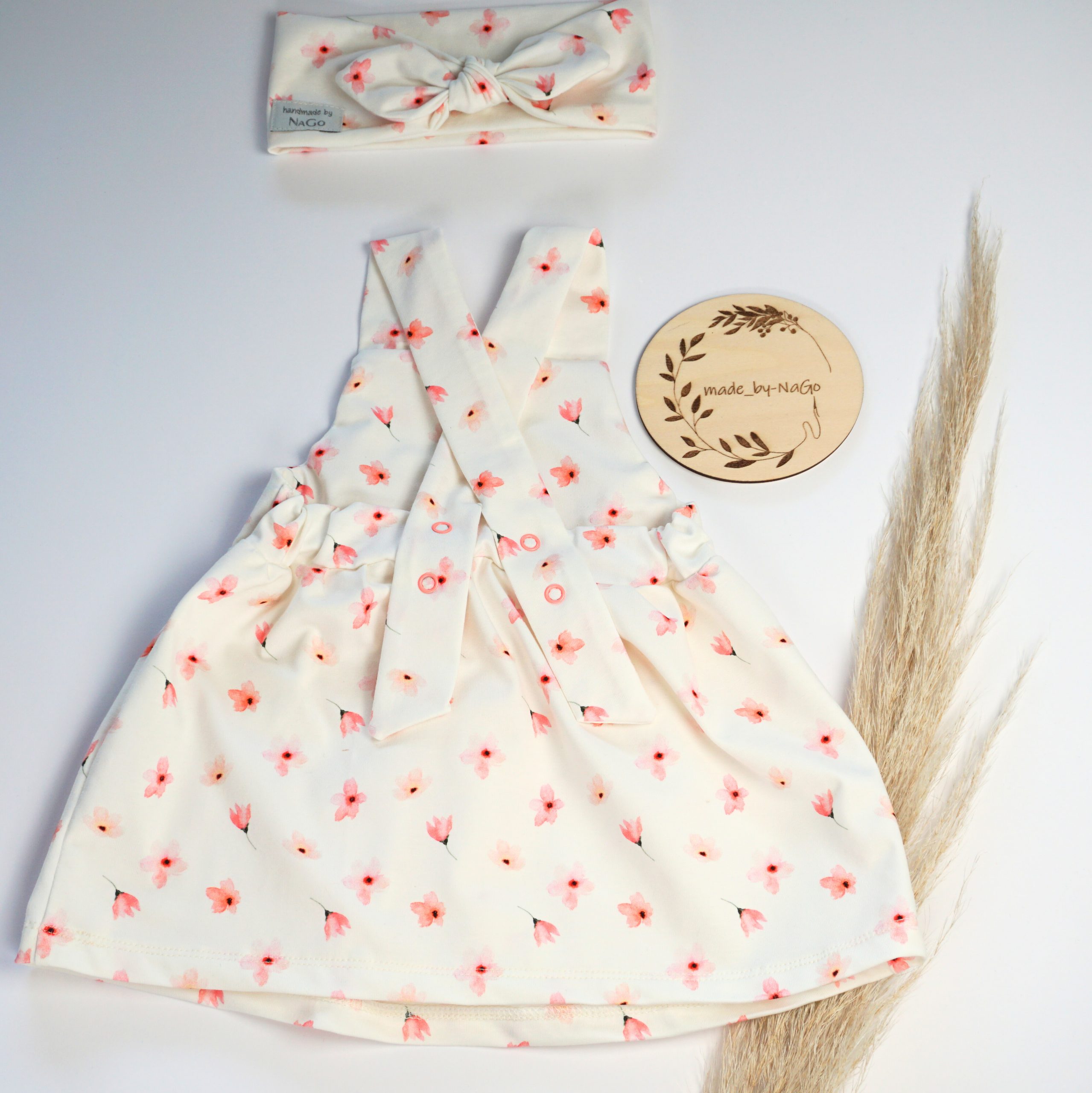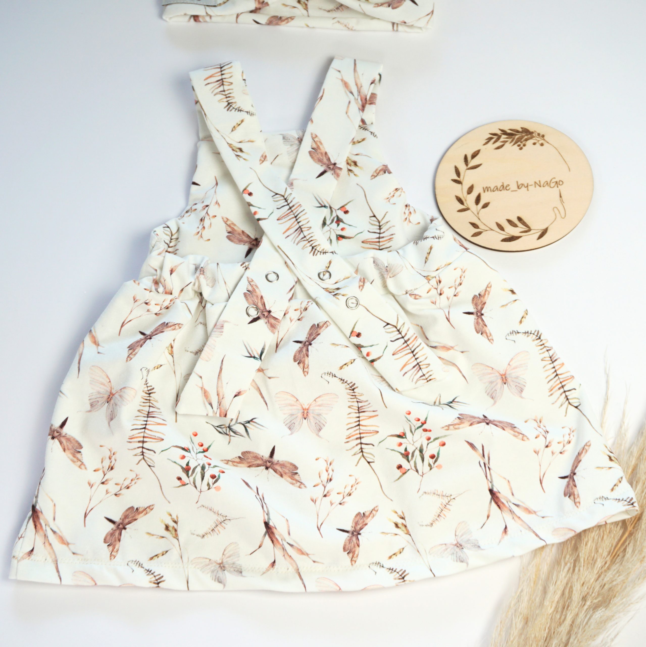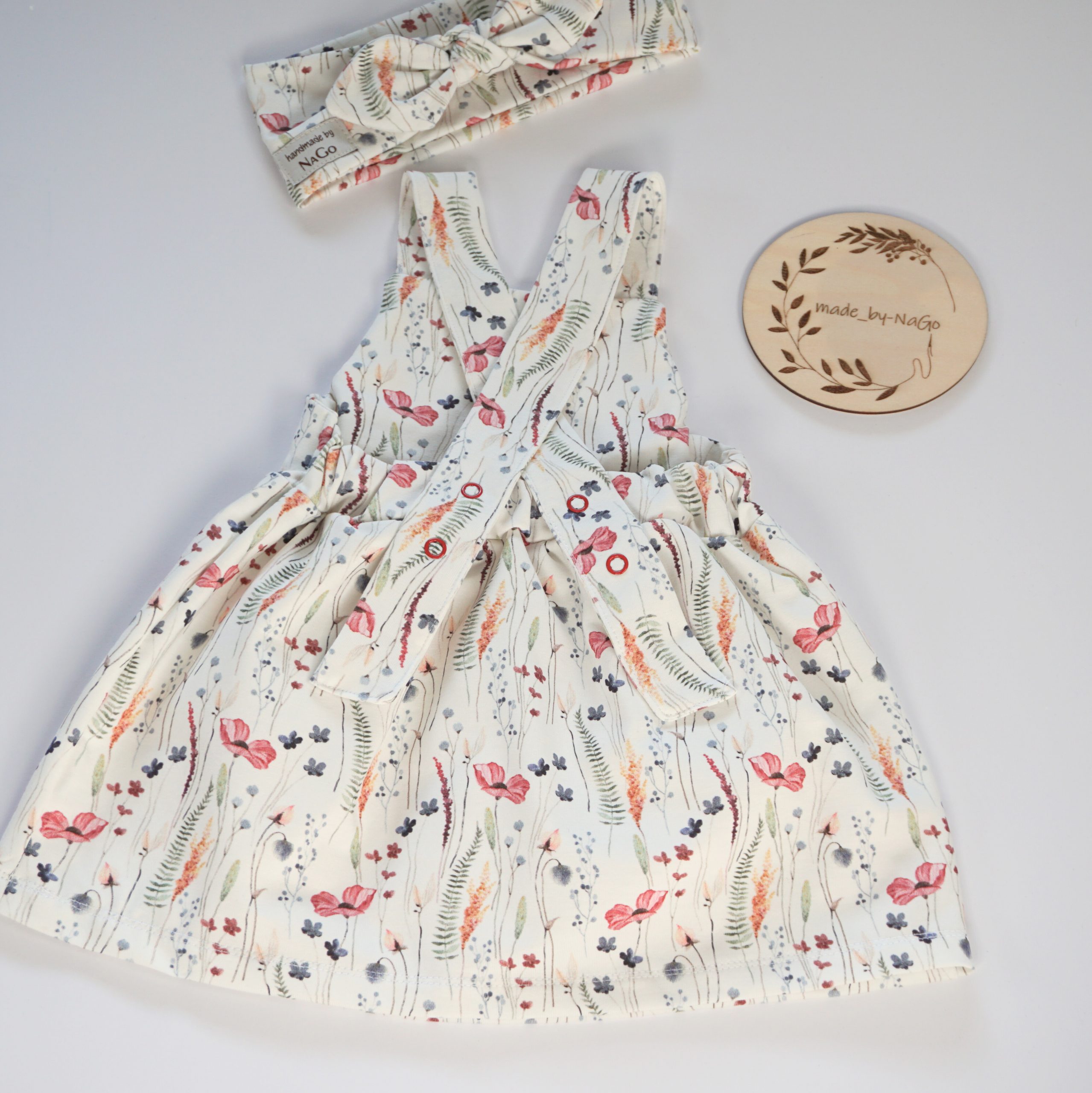 Ein zuckersüßes Baby-Latzkleid für kleine Mädchen aus hochwertigem Baumwolljersey. Die Träger des Latzrockes werden im Rücken überkreuz mit 2 Druck-Knöpfen geschlossen. Ein passendes Stirnband ist in unserem Shop auch erhältlich Material : Ökotex Standard 100 94% Baumwolle, 6% Elasthan Größe: 68 Pflegehinweise: 30°C Maschinenwäsche auf links ohne Weichspüler, bei mittlerer Stufe bügeln, nicht im Trockner trocknen