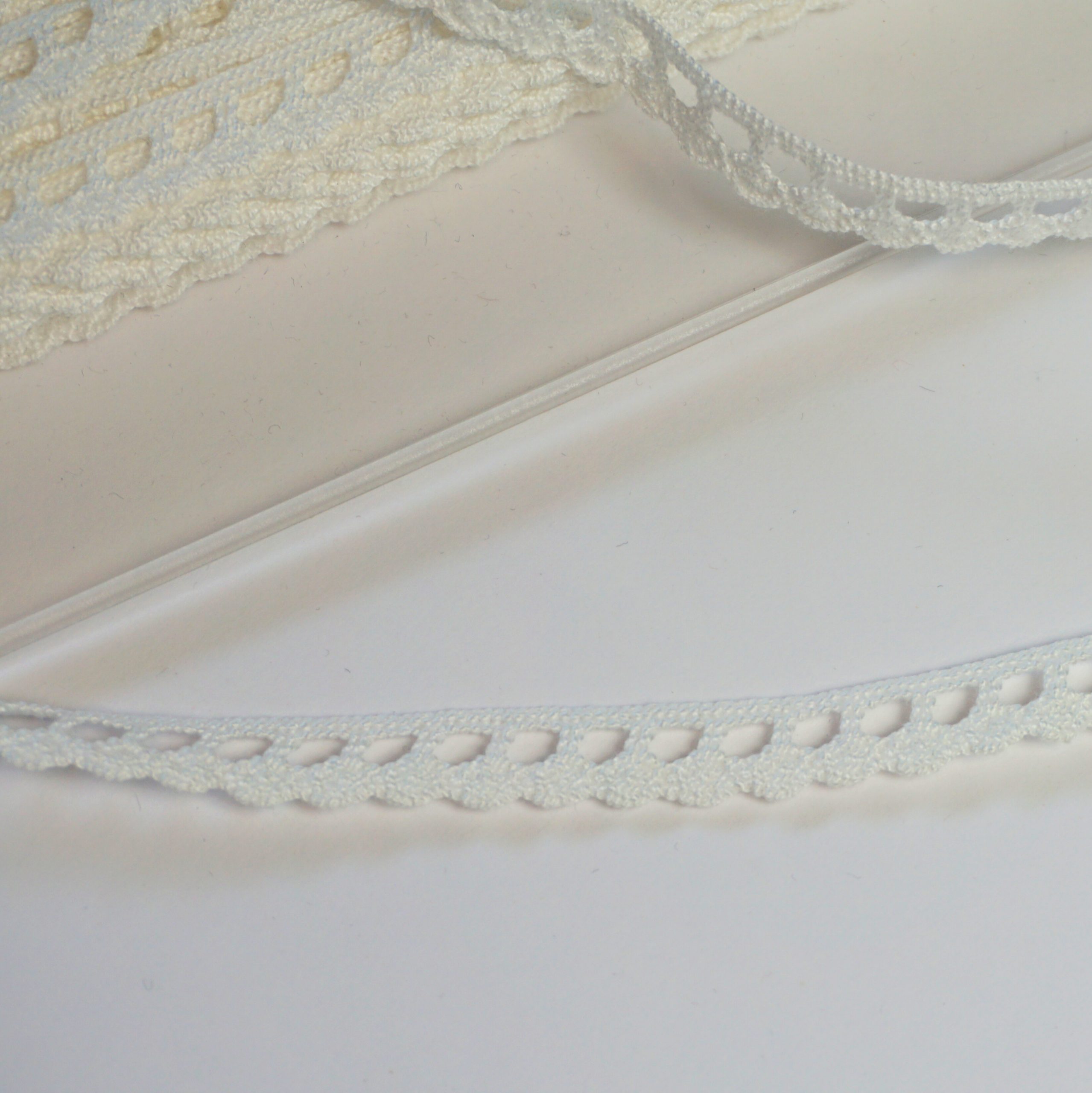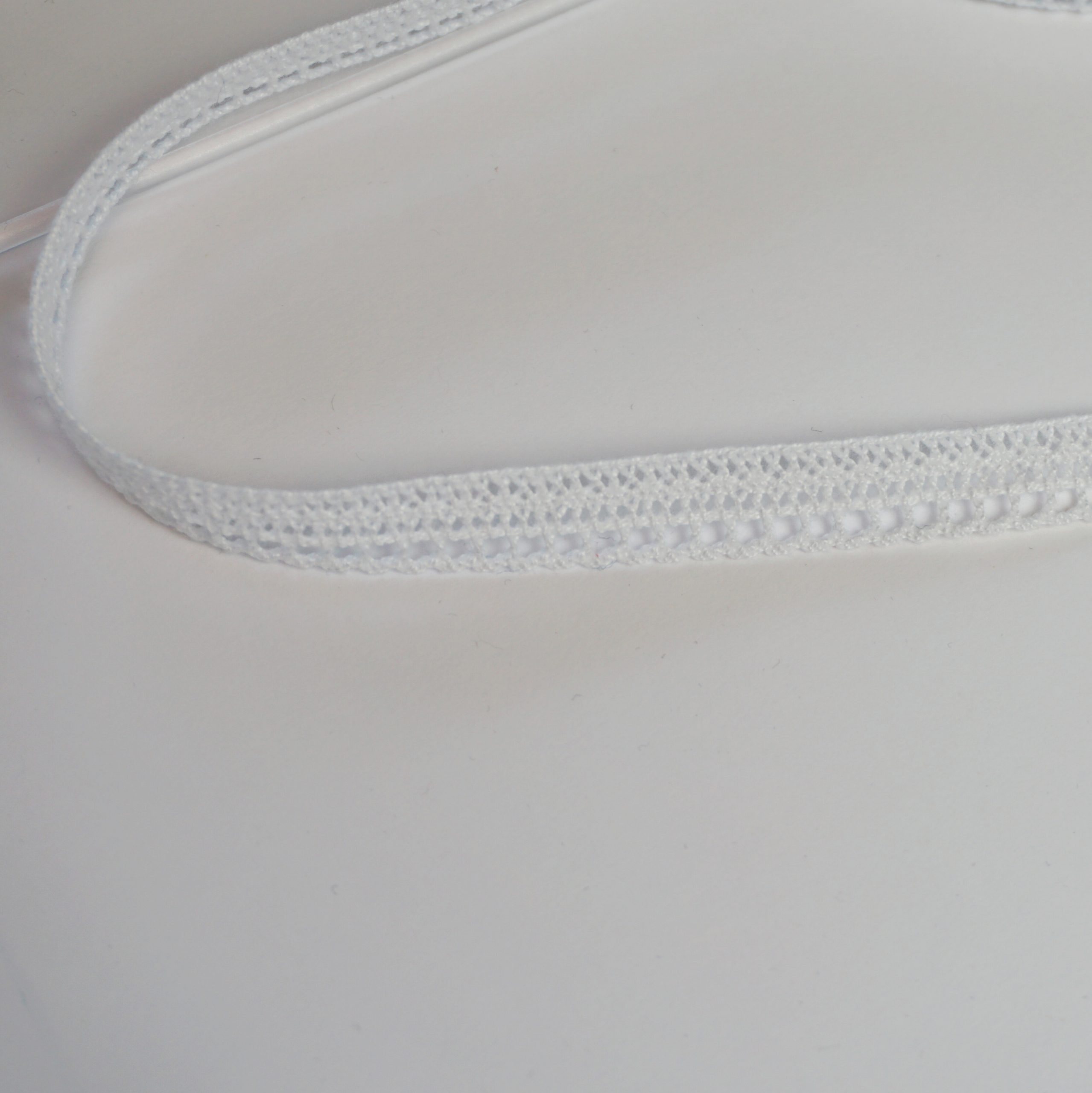 Die Spitze macht aus schlichten Kleidung ein Hingucker. Breite: 1 cm Farbe: weiß Material: Baumwolle Länge: 1 Meter, bei mehreren Einheiten wird es in einem Stück zugeschnitten