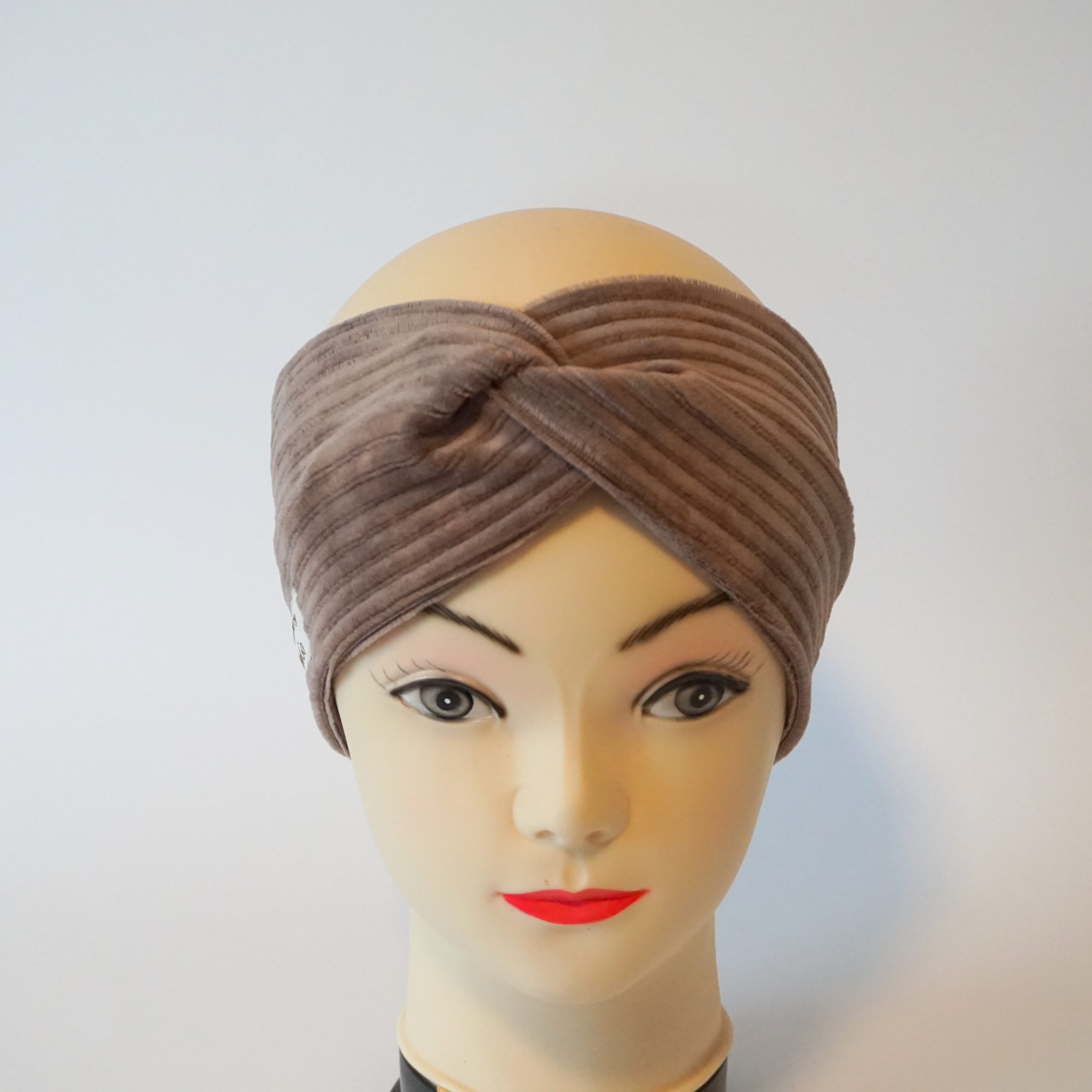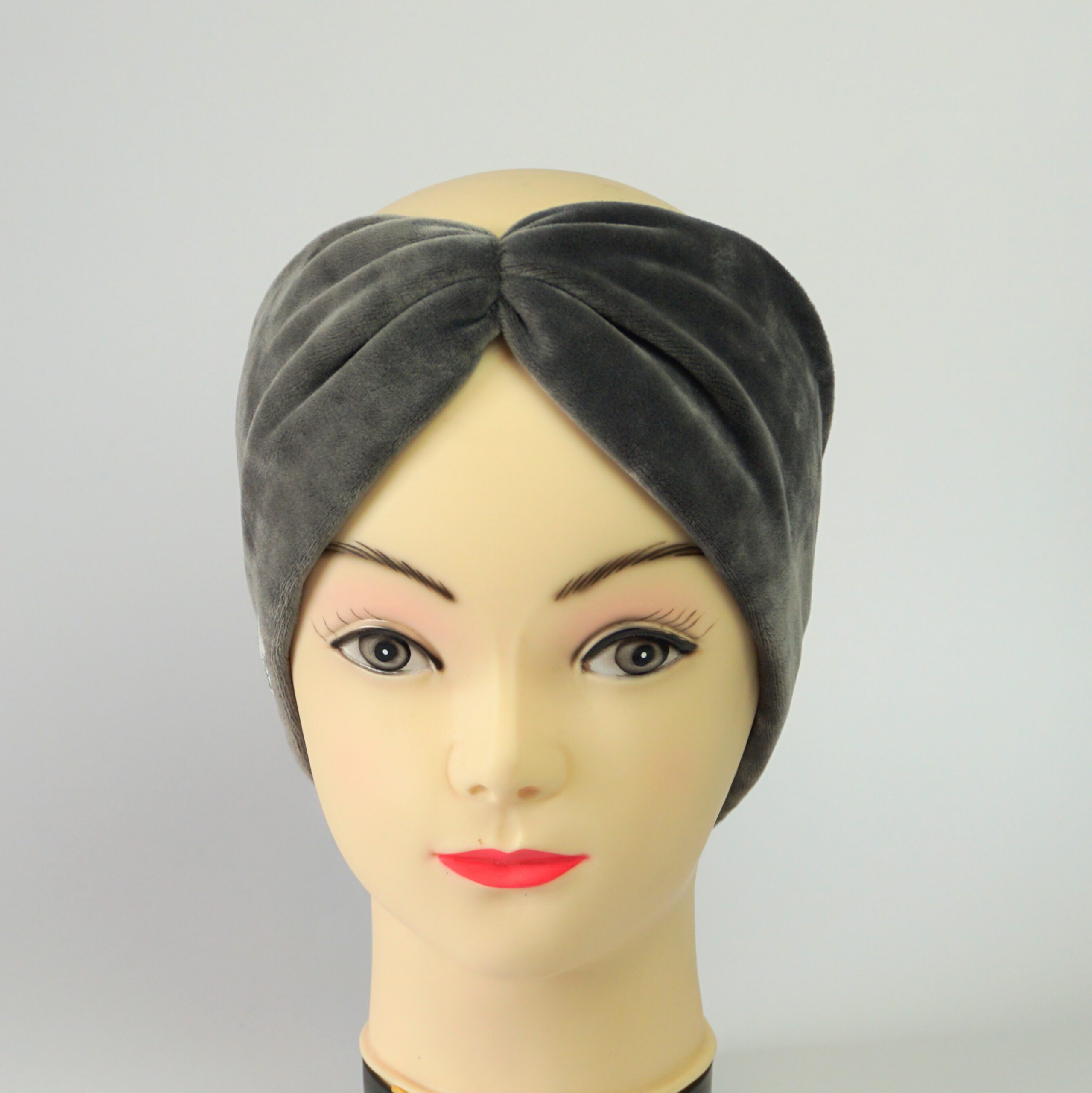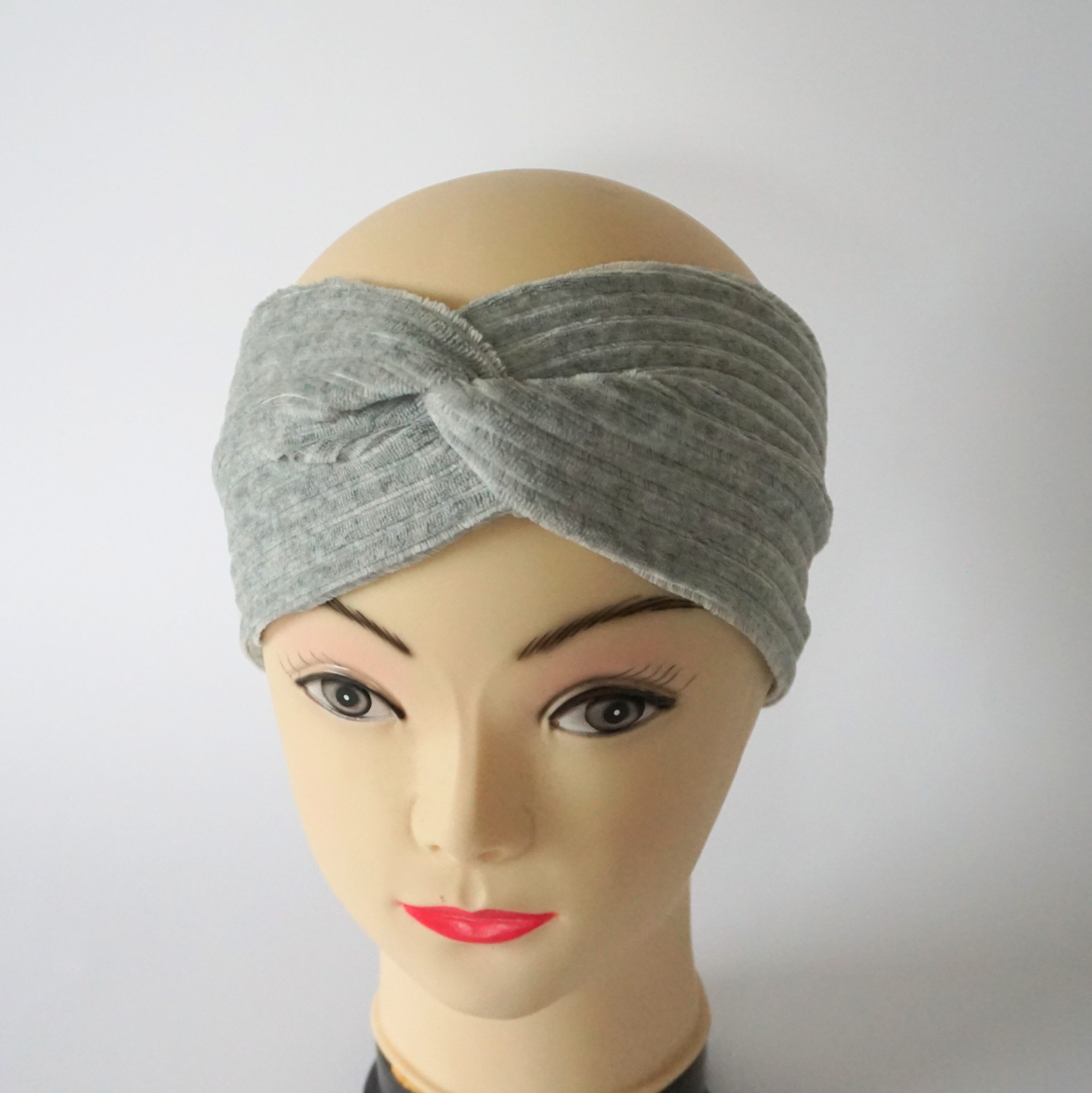 Wunderschönes Stirnband aus weichem Samtjersey für Kopfumfang 56 cm Dieses Stirnbander ist warm und ist perfekt geeignet für den Frühling und Herbst. Material : Ökotex Standard 100 92% Polyester, 8% Elasthan Farbe: grau Breite: 11 cm Pflege: 30 Grad Feinwäsche, bitte nicht in den Trockner geben.