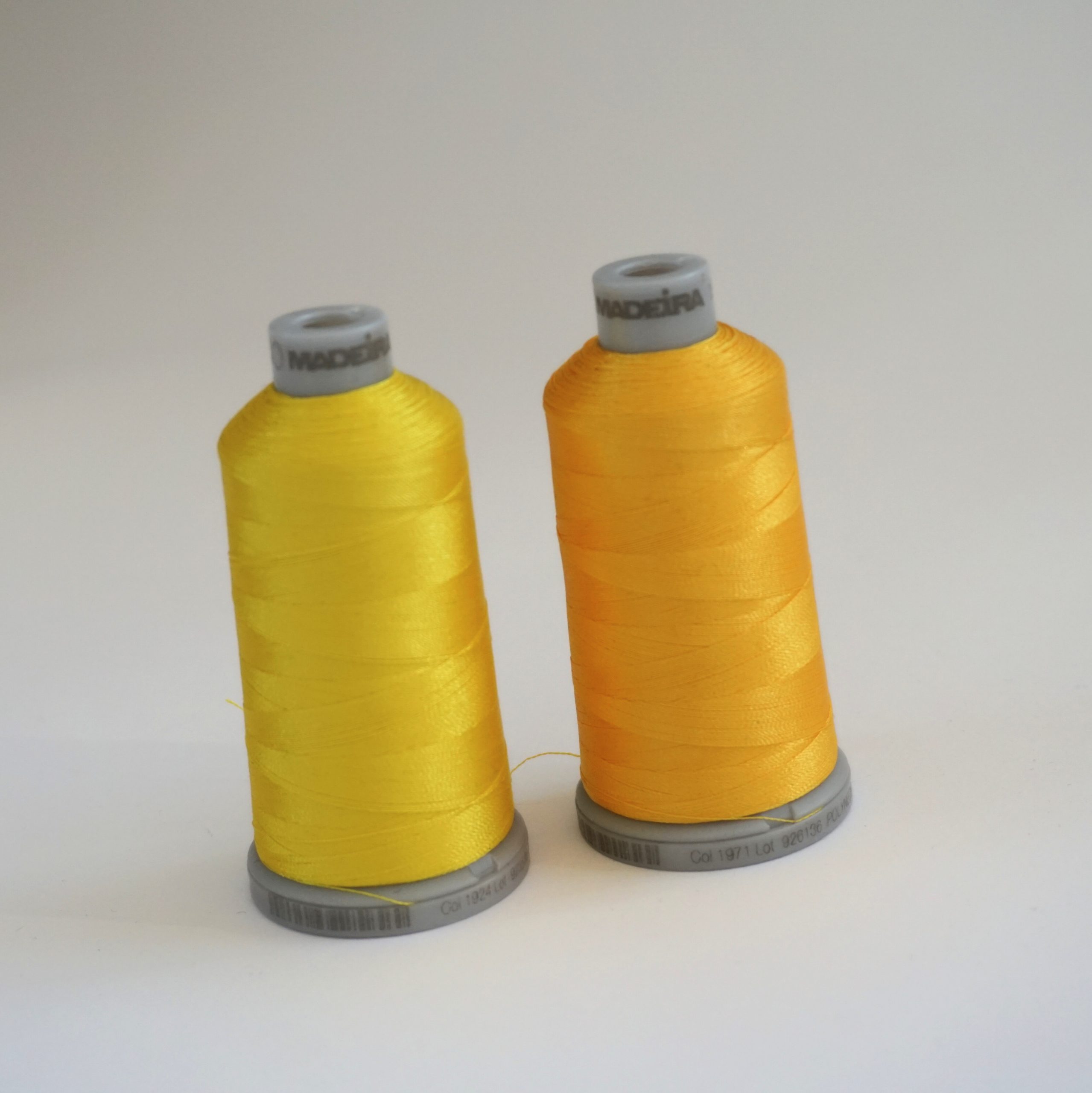 Das robuste und qualitative Polyester-Stickgarn von Madeira wird für Stickerei verwendet. Ideal für stark beanspruchte Textilien wie Sport-, Outdoor- und Kinderbekleidung und bietet bleibende intensive Leuchtkraft auch bei häufigem Waschen. Produktinformation: Polyneon No. 40 Standard-Garnstärke Farb Nr.: 1971 - sonnengelb, das zweite Bild ist zum Vergleich Länge: 1000m Für verschiedenen Stickmaschinen geeignet Nadelempfehlung: 65/9 - 75/11 Waschbar bis 95 °C