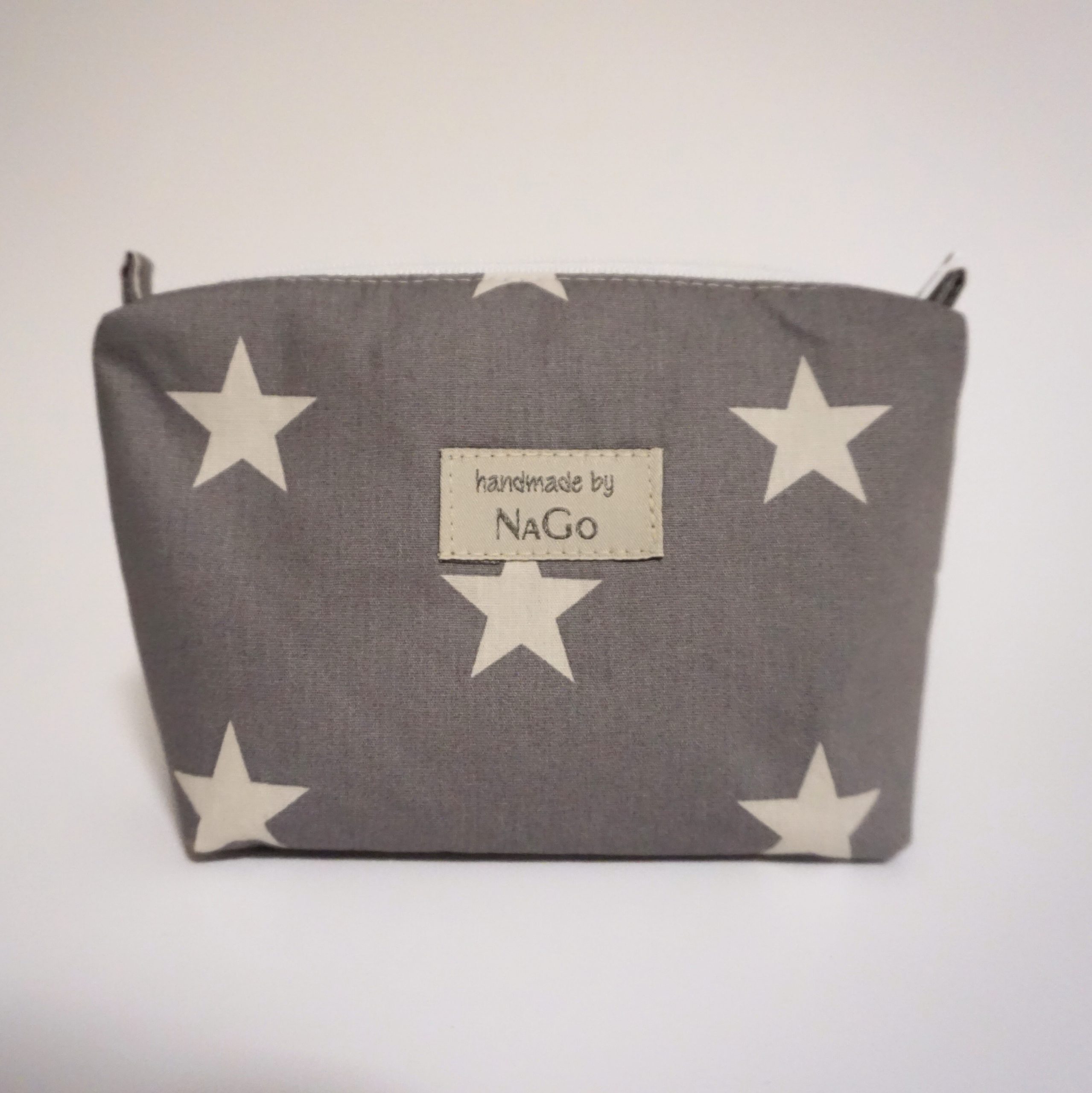 Details: – Maße: 15 cmx 5,5 cm x 9,5 cm (B x T x H) – Weicher Baumwollstoff in grau mit Sternen (2,7x2,7 cm) – Die Innenseite besteht aus dem gleichem Stoff