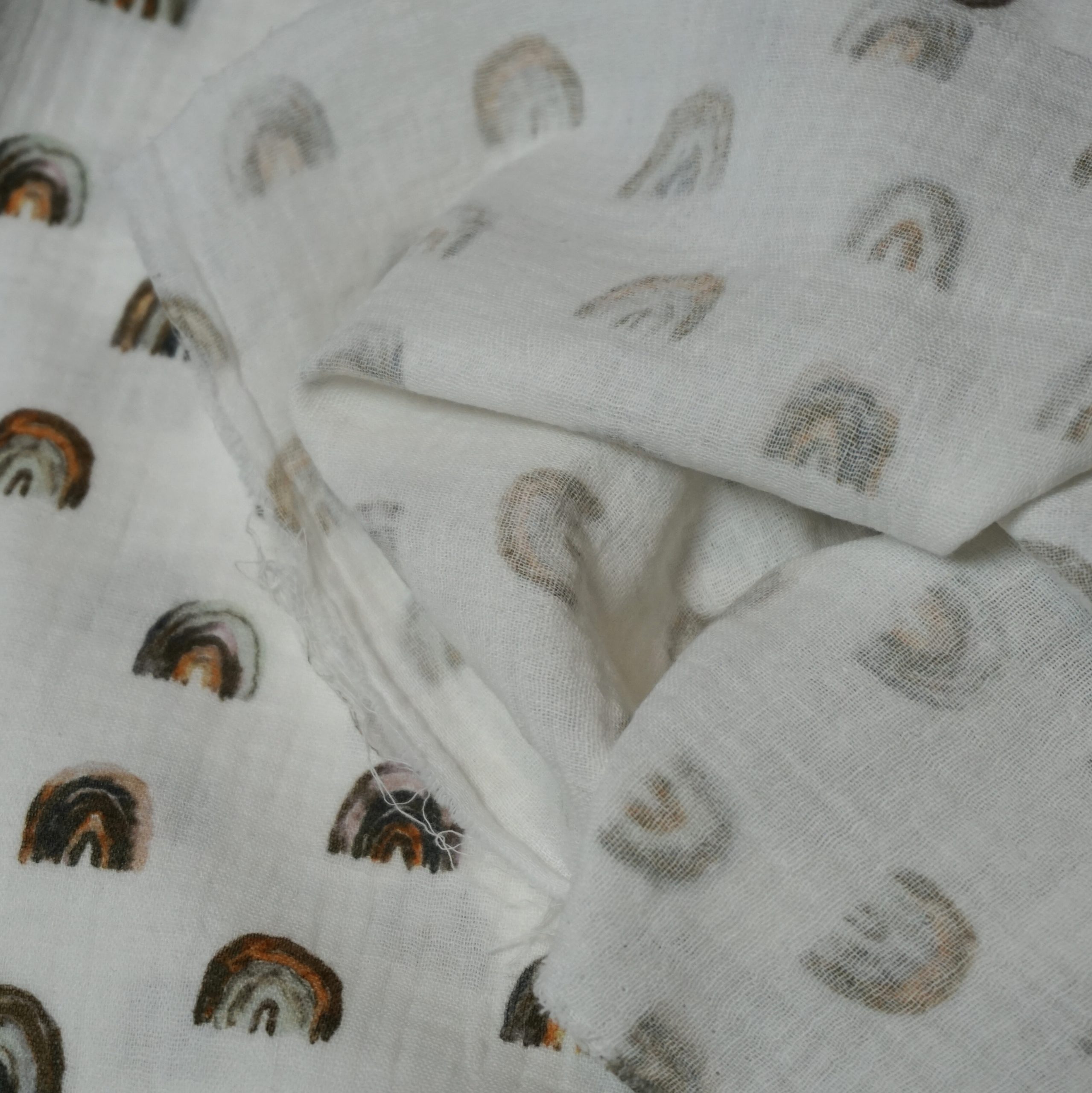Weiches Baumwoll Musselin mit Regenbogen in Brauntönen
