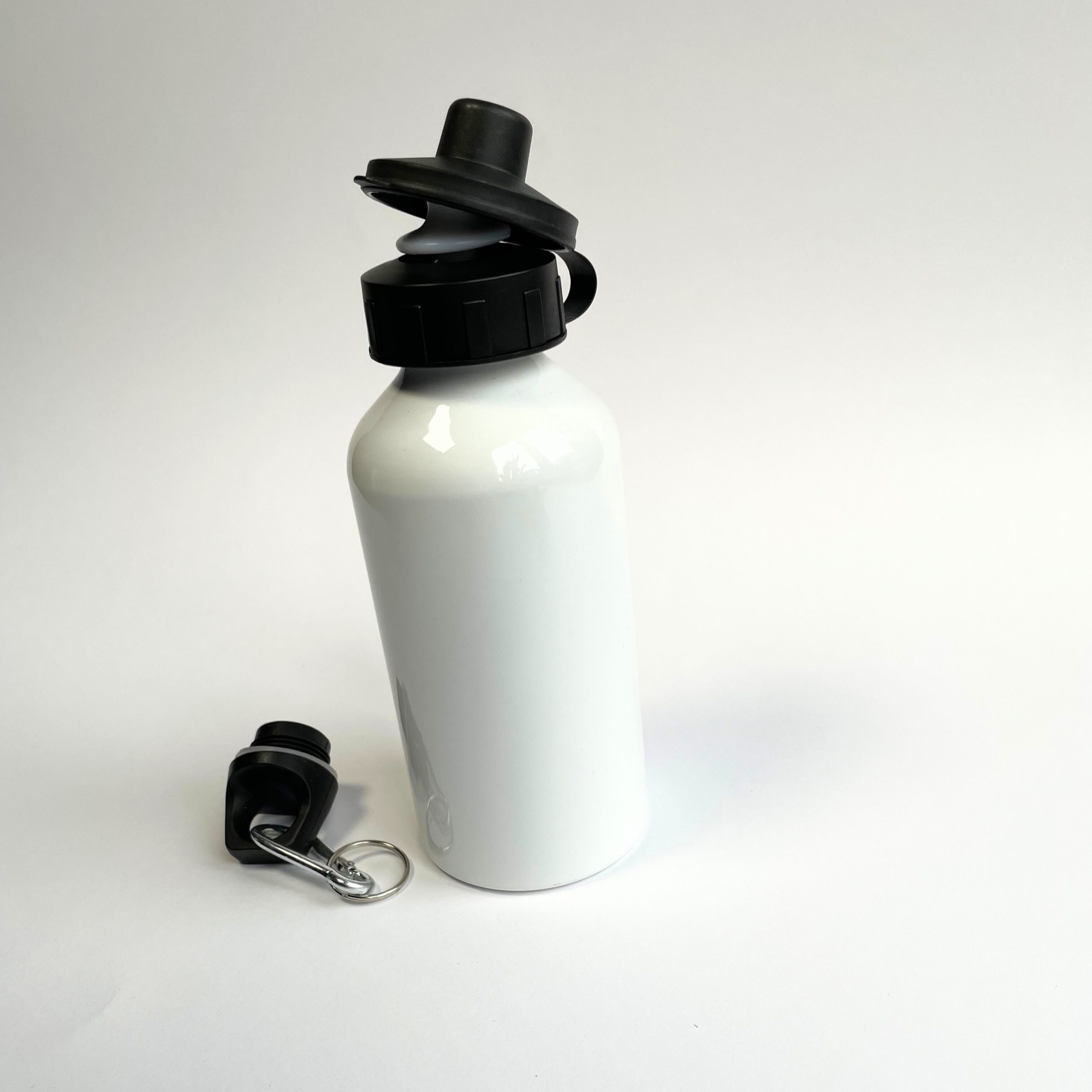 Ideal für Unterwegs, zum Sport, oder zur Schule/Kindergarten. 60 Sek. bei 180 Grad sublimieren Inhalt: 400 ml Fassungvermögen Farben: weiß Höhe 145 mm, Durchmesser 65 mm, Gewicht ca. 60 g inkl. Mundstück mit Deckel, Schraubverschluss und Karabiner OHNE DRUCK ! Pflege: HandwäscheAluminium Trinkflasche mit zwei verschiedenen Verschlussmöglichkeiten.Das Mundstück zum Hochziehen und ein Schraubverschluss mit Karabinerhaken.10,50 €