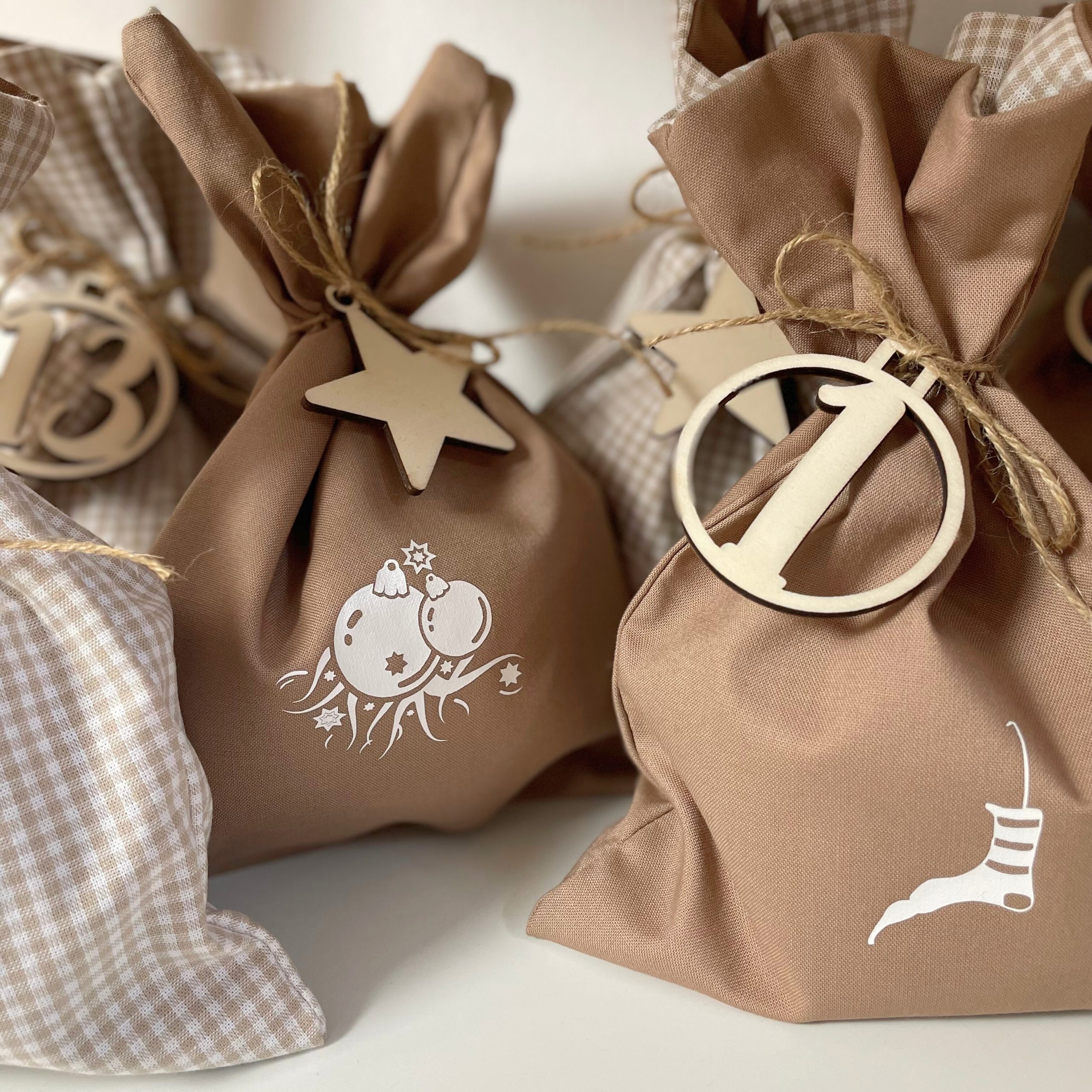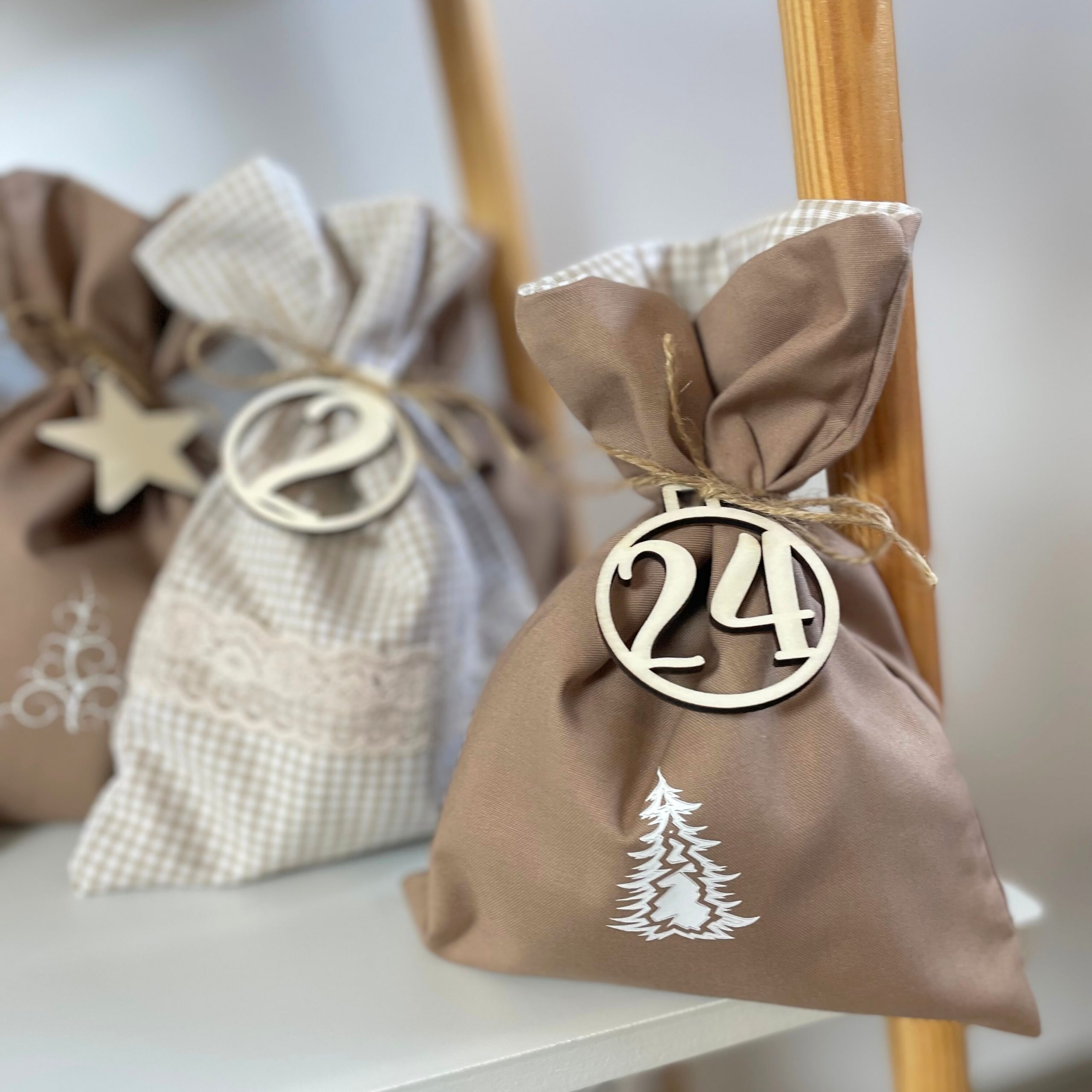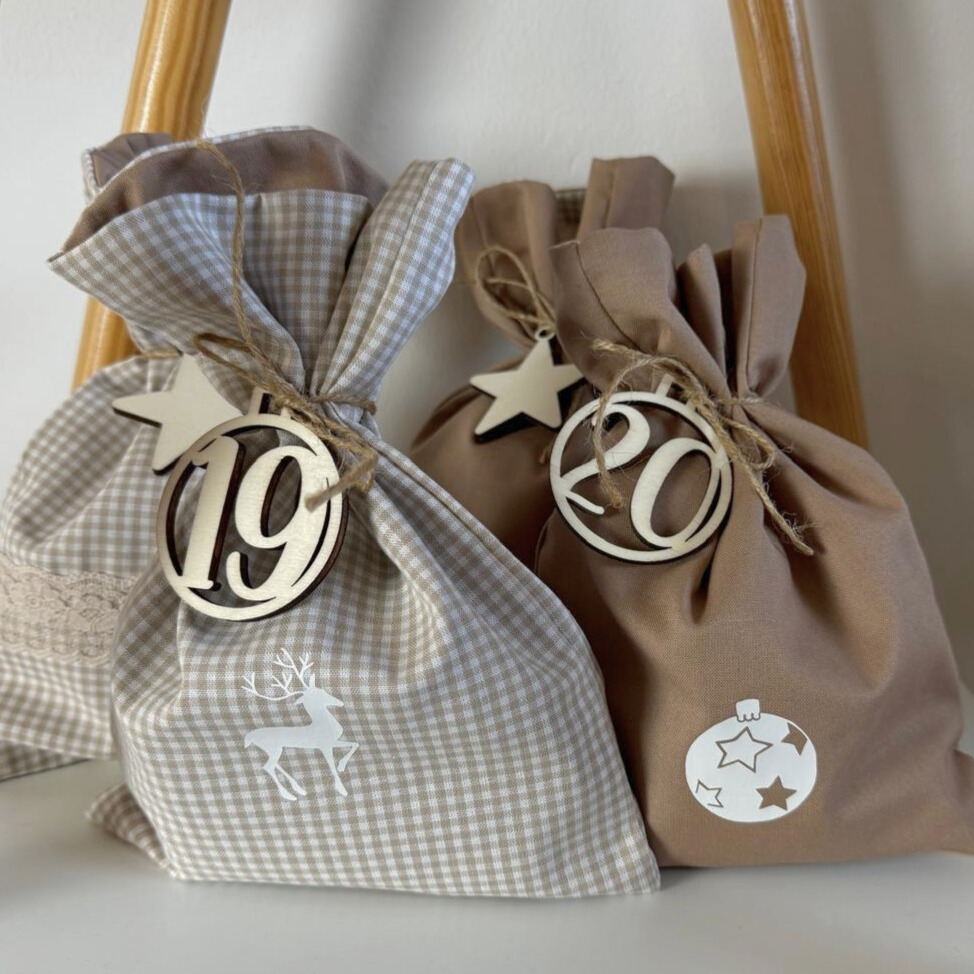 Jede der 24 Säckchen wird in liebevoller Handarbeit aus hochwertigen Materialien hergestellt und bietet genügend Platz für kleine Überraschungen, Süßigkeiten oder persönliche Bootschafen.