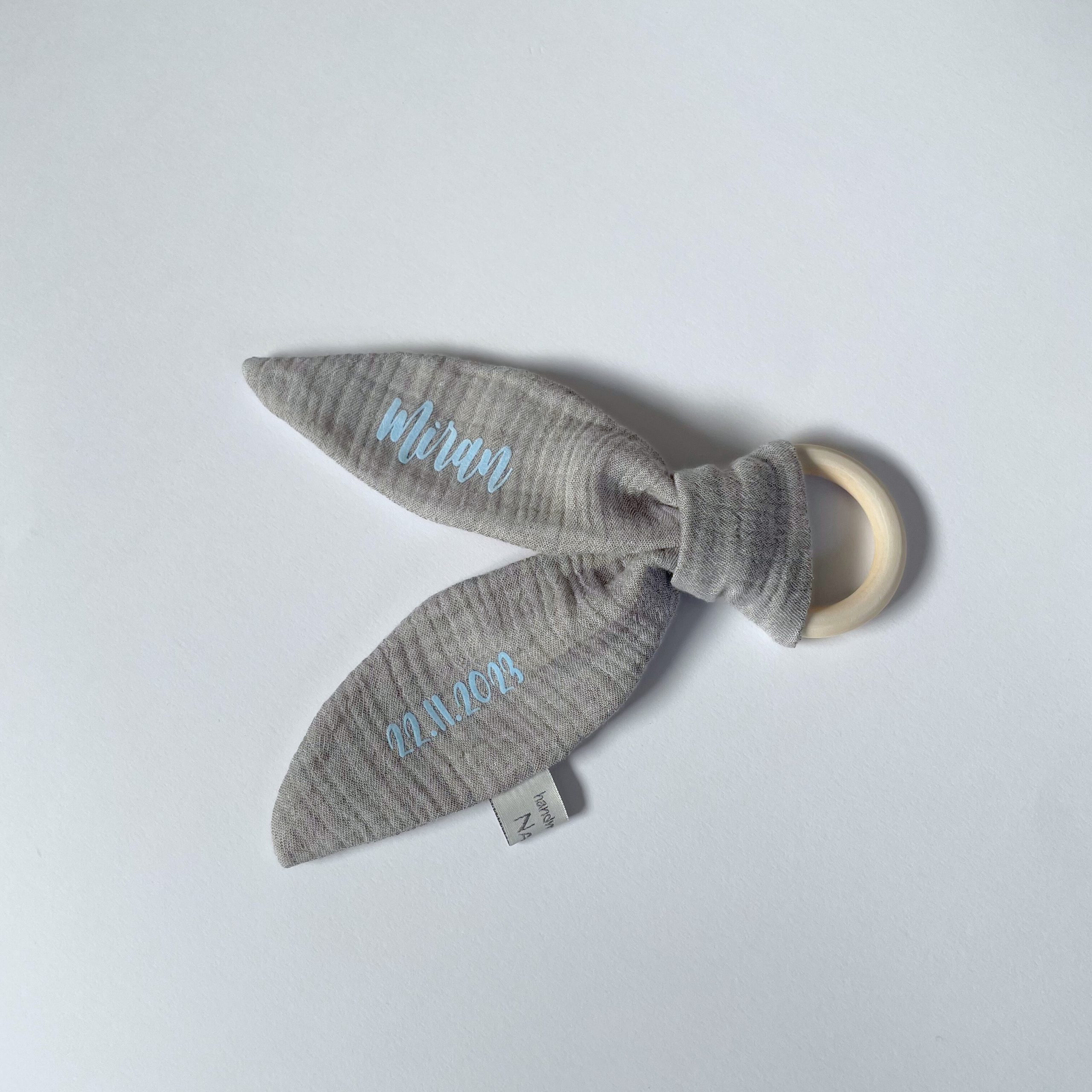 Der runde Holzring ist aus unbehandelter Buche und Musselinstoff aus 100% Baumwolle.