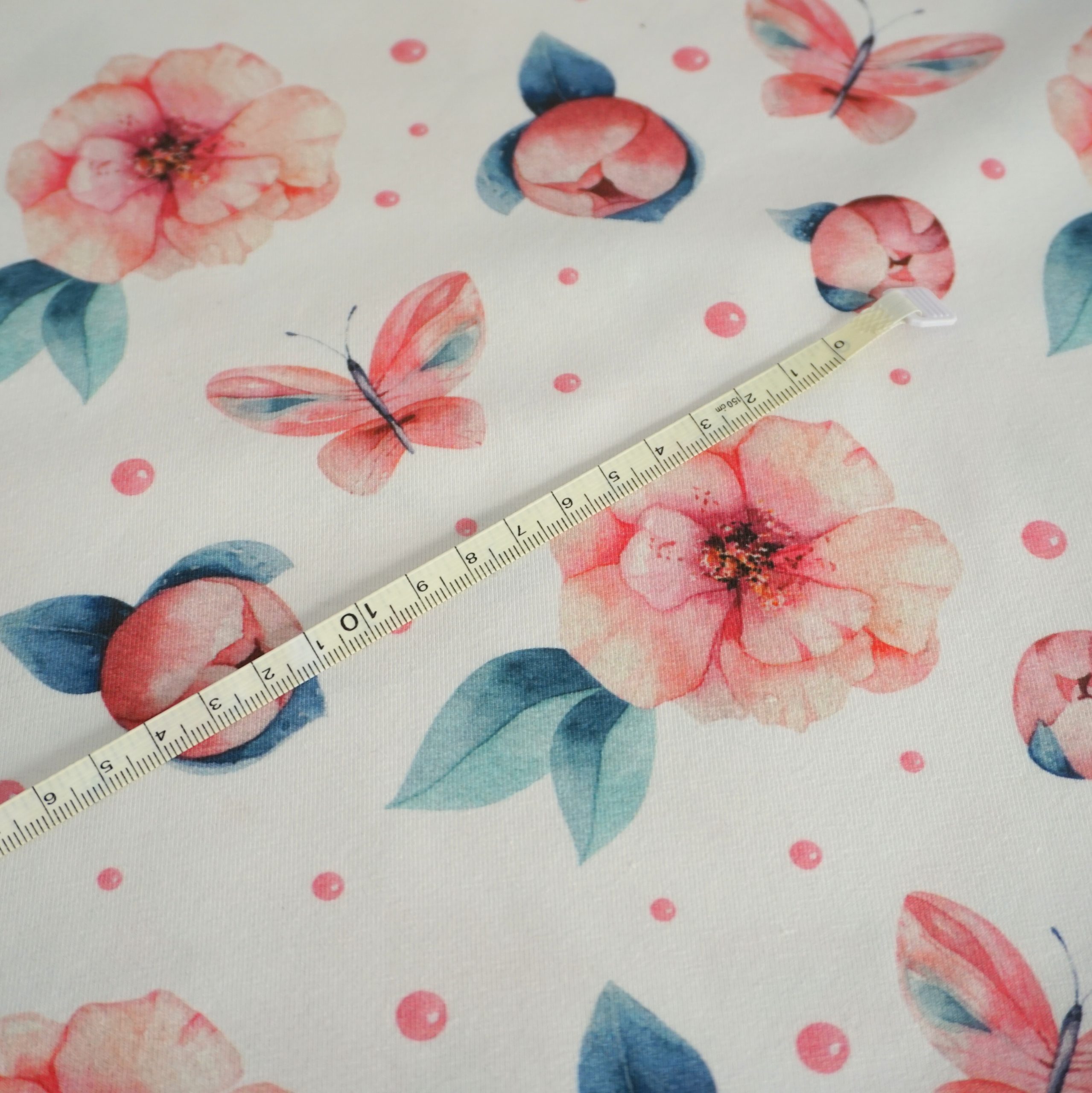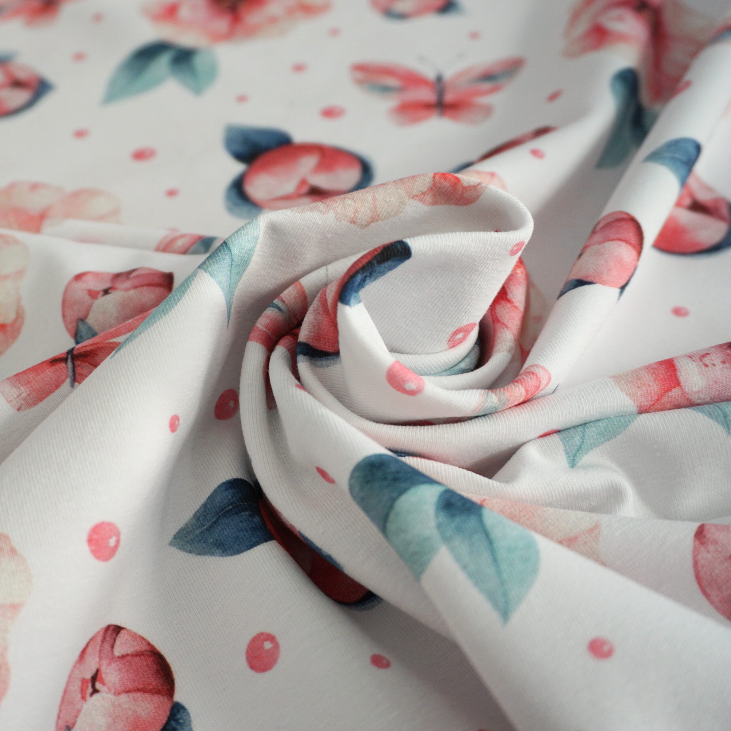 Weiches Baumwolljersey mit großen Schmetterlingen und Blumen