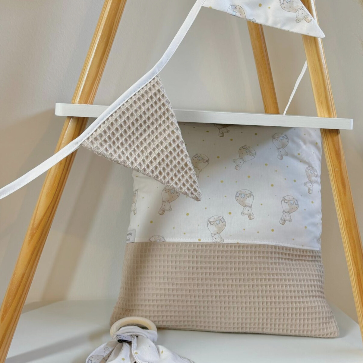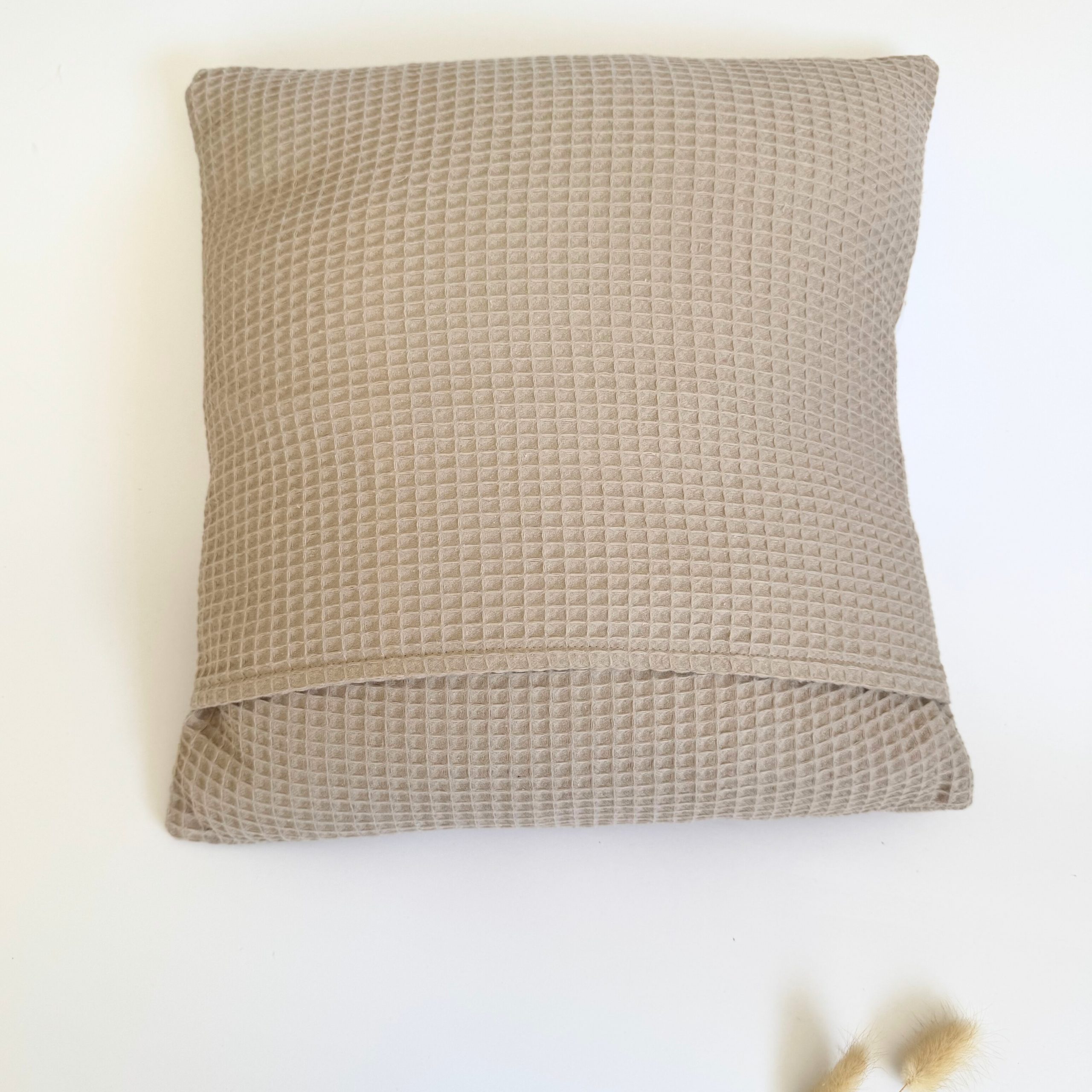 Das Kissen besteht aus einer Kombination Baumwolle und Waffelpique.