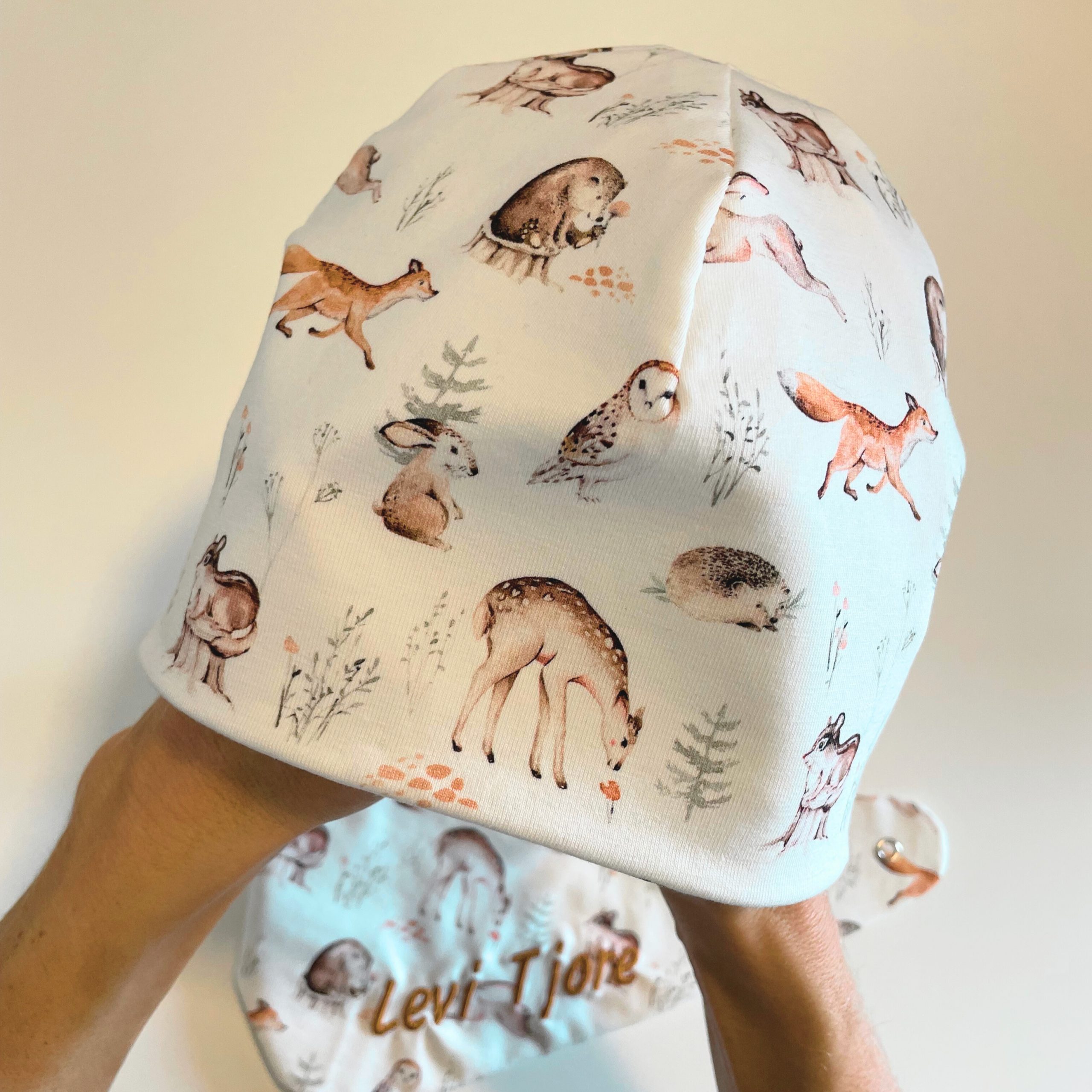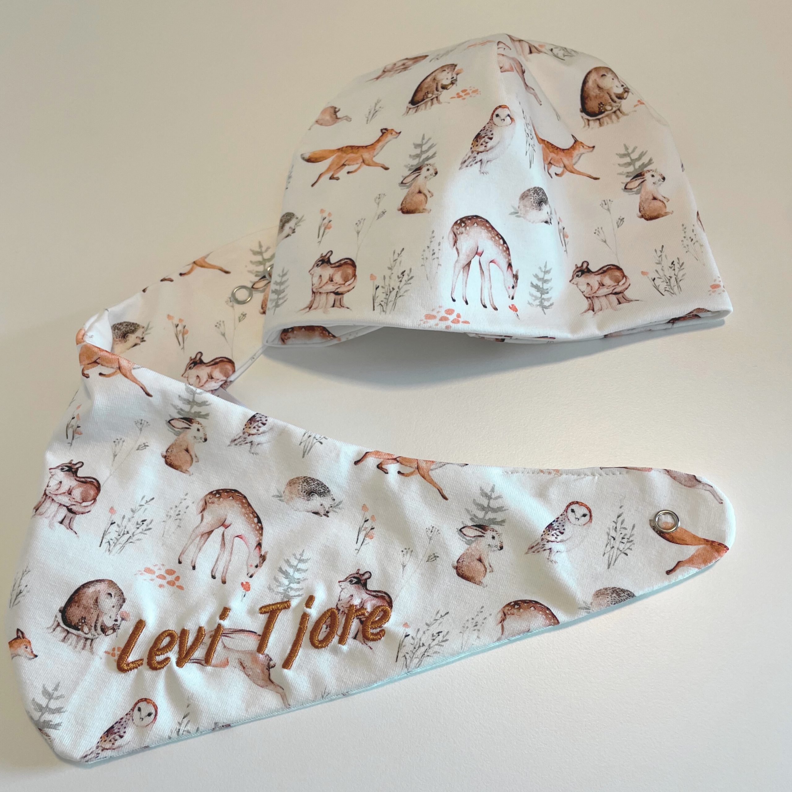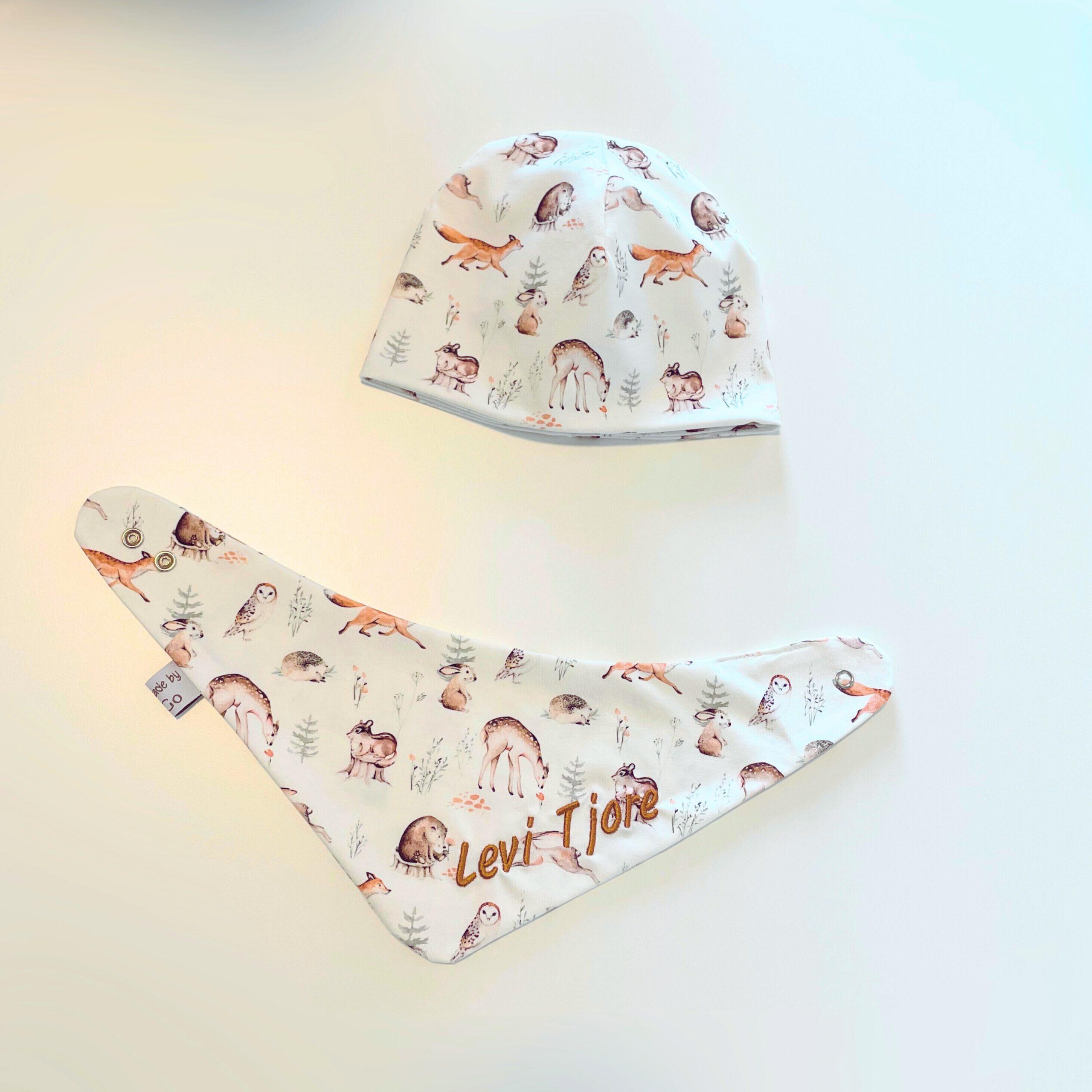 Das süße Set besteht aus Mütze und Halstuch mit Druckknöpfen. Ihr habt auch die Möglichkeit das Halstuch personalisiert zu bekommen. Der Name wird schräg auf dem Halstuch mit hochwertigem Stickgarn gestickt.