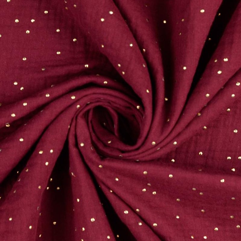 Musselin/Double Gauze mit goldenen Tupfen (bordeaux)