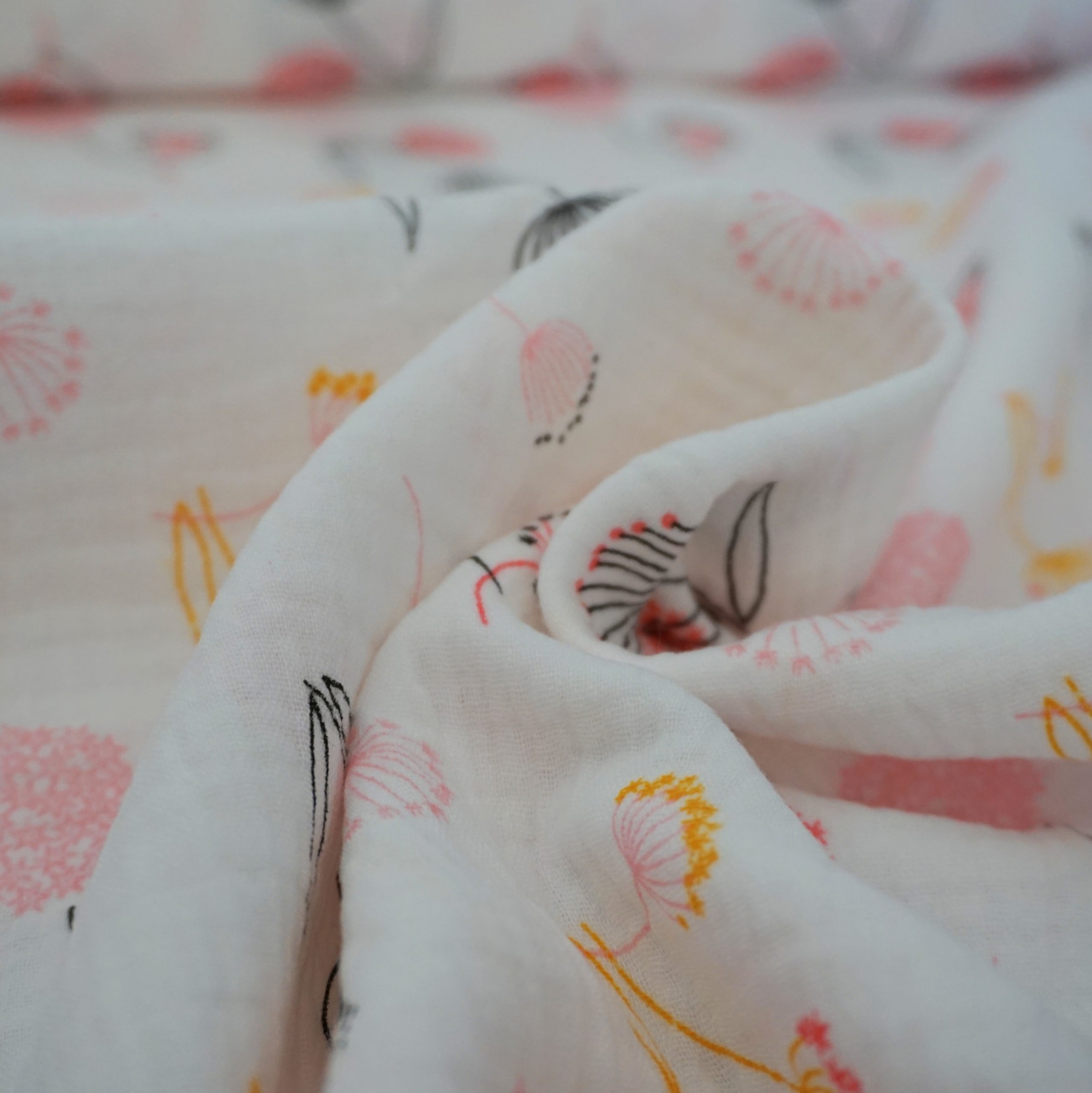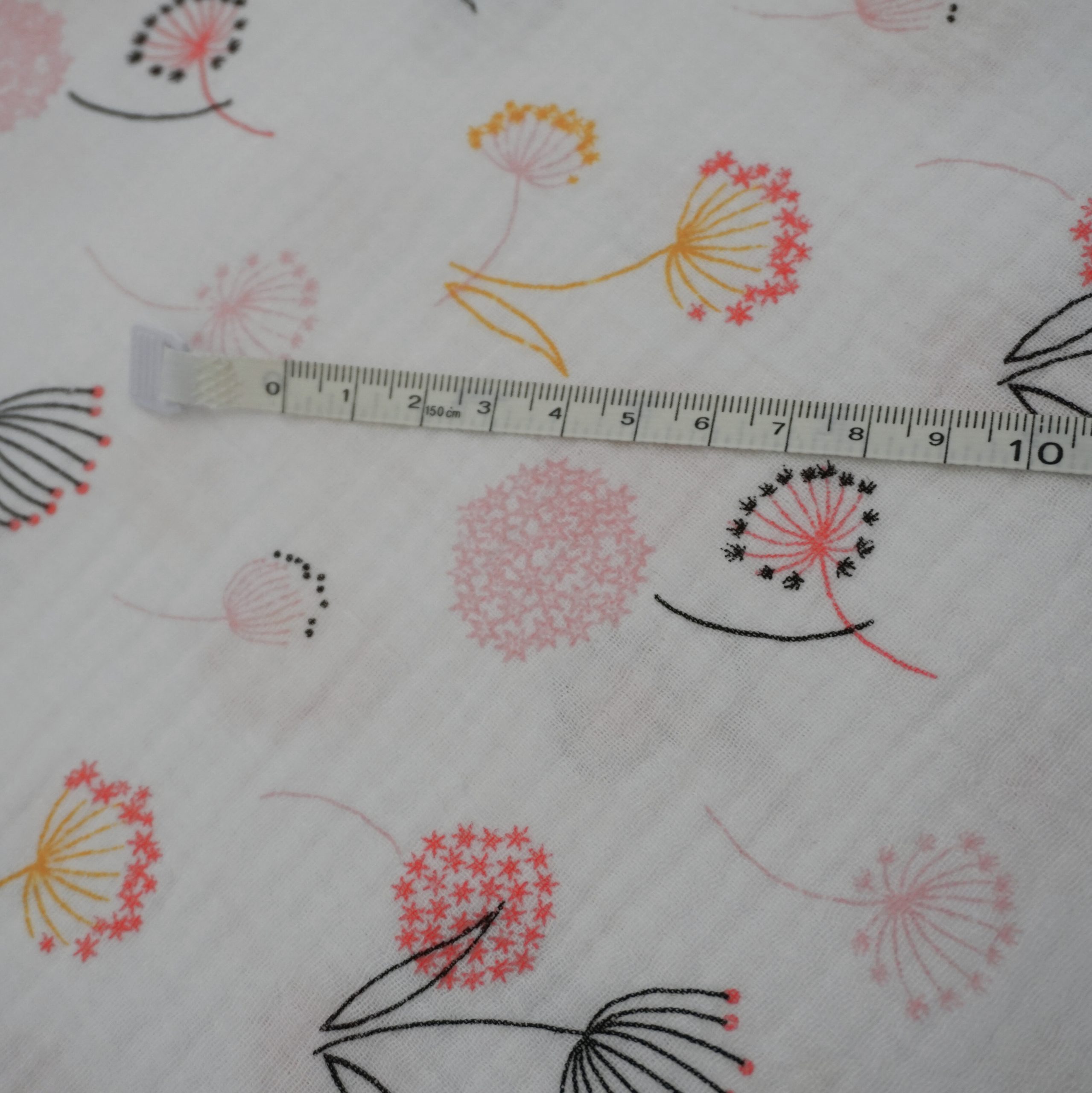 Weiches Baumwoll Musselin mit rosa Pusteblumen