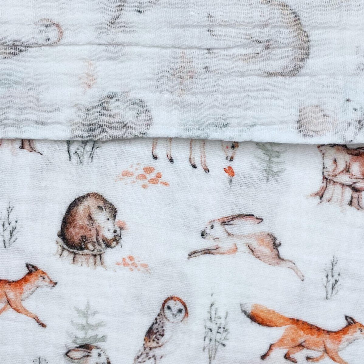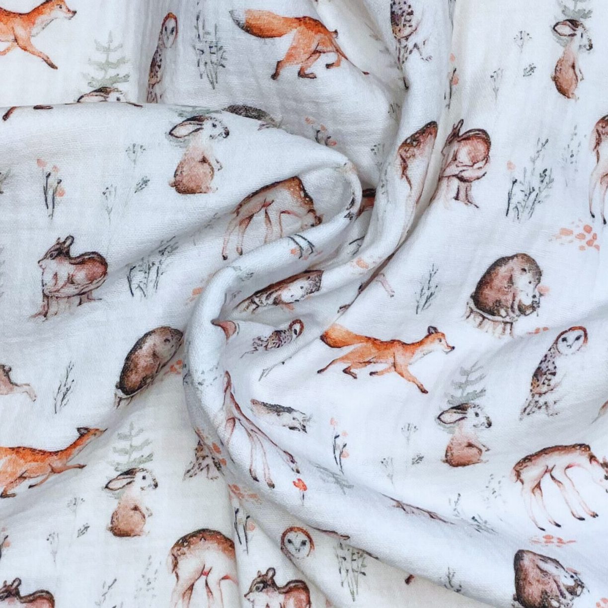 Weiches Baumwoll Musselin mit Waldtieren