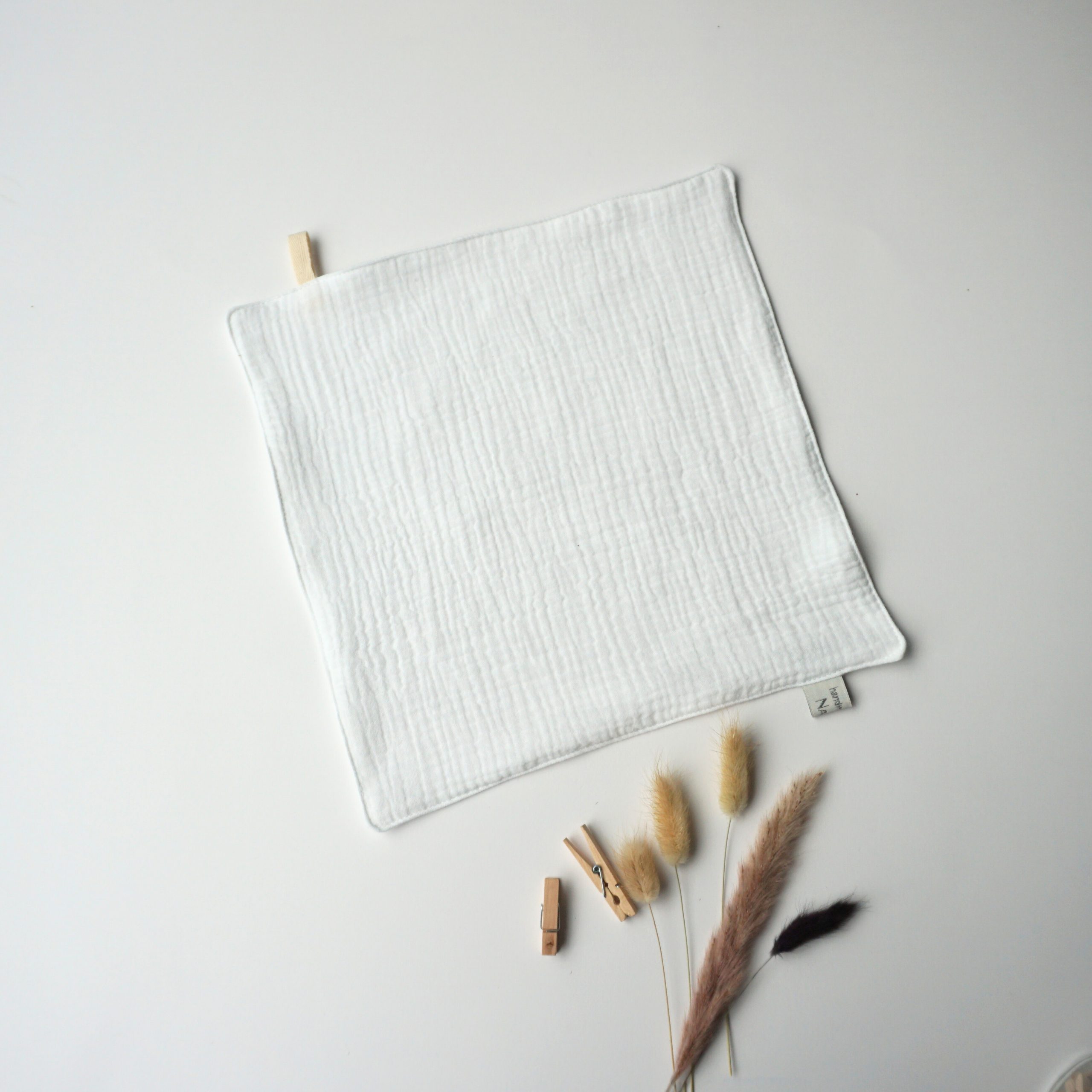 Saugfähiges Musselintuch / Spucktuch mit Schlaufe zum Hängen, doppelt genäht.