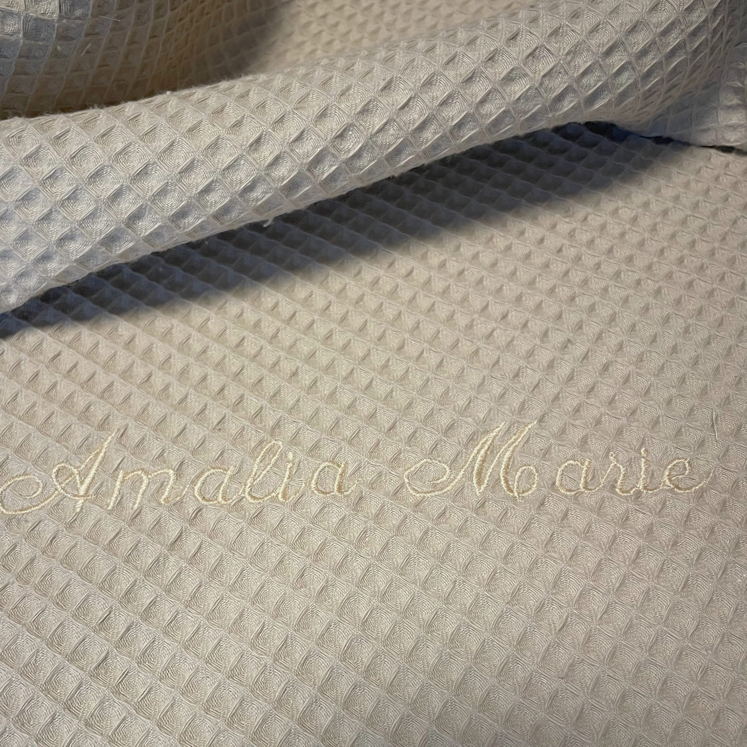 Das Highlight: der Name Ihrer Babys wird mit hochwertigem Garn aufwendig gestickt und macht einen persönlichen Erinnerungsstück.