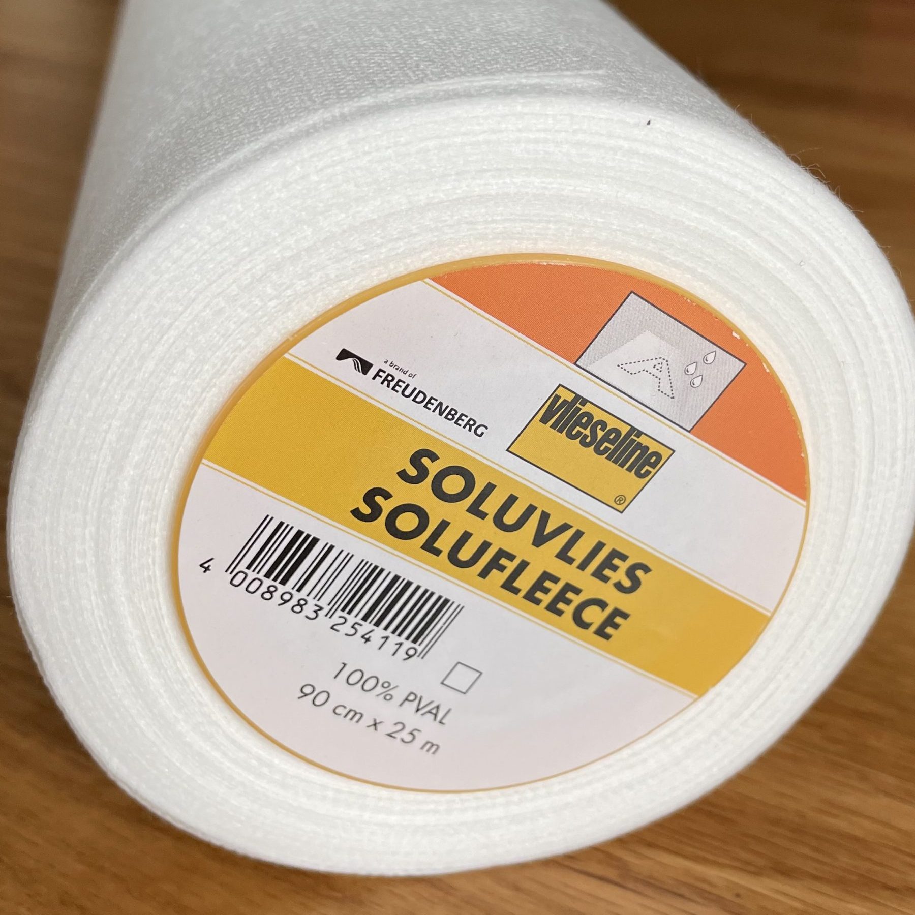 Soluvlies ist ein halbtransparentes Vlies. Es wird als Basis für Stickereien verwendet. Nach dem Sticken wird es in Wasser eingeweicht, löst er sich rückstandslos auf.